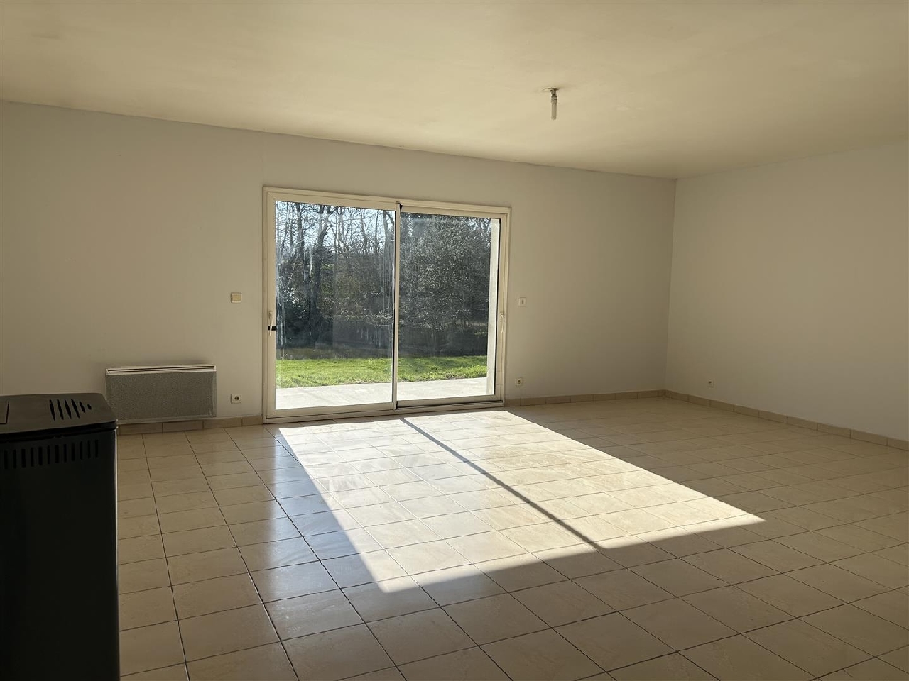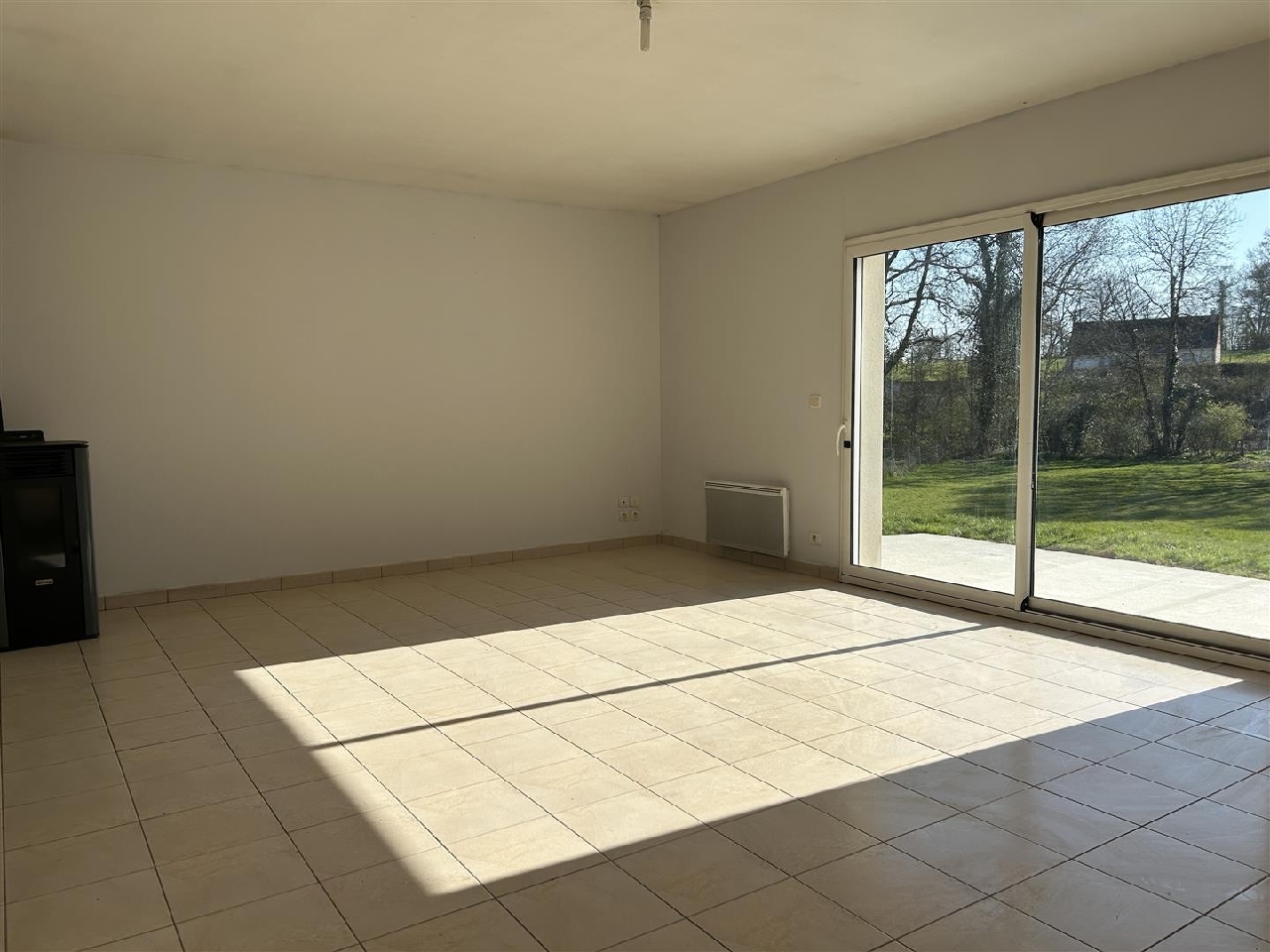 Entrée, séjour avec poèle à granulés, 2 chambres, salle d'eau, wc.