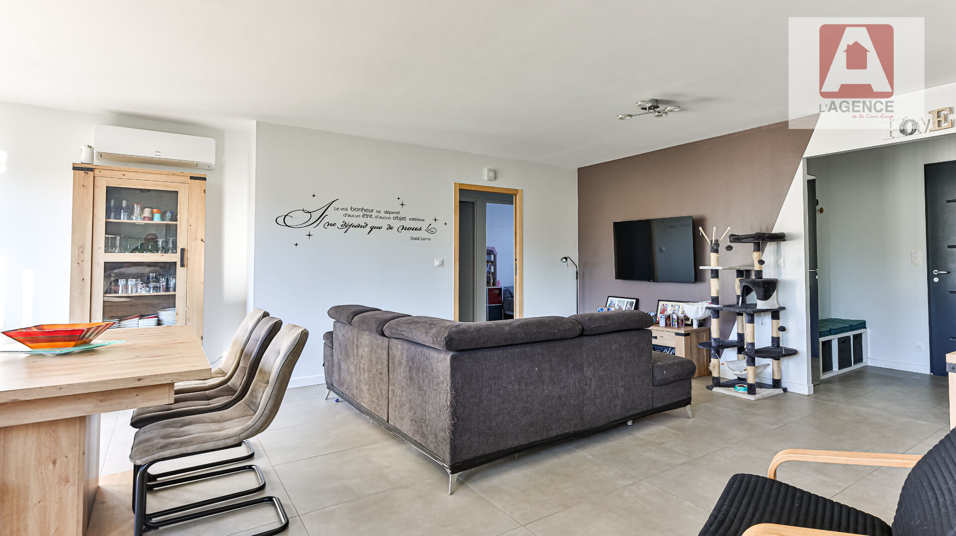 Dans domaine privé, maison de standing 4 pièces comprenant : cuisine meublée et équipée avec accès directe sur garage double, séjour aux beaux volumes avec cheminée ouvrant sur espace extérieur avec terrasse,espaces verts, piscine chauffée, préau , 2 chambres,...