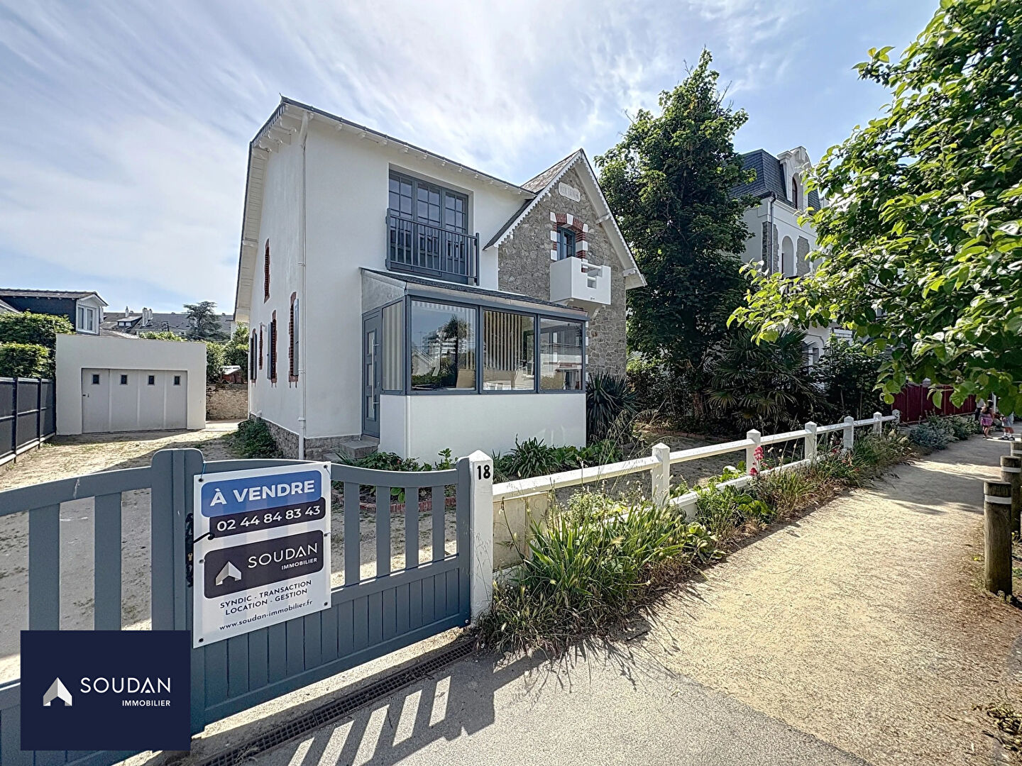 Découvrez cette charmante maison idéalement située dans un secteur prisé de La Baule, à seulement 8 minutes à pied de la plage Benoît. Implantée sur un terrain clos d'environ 450 m², elle bénéficie d'un jardin arboré exposé plein sud, de deux terrass...