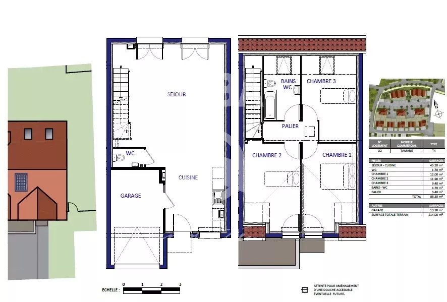 En impasse, au calme et proche gare TGV LA BAULE, cette maison propose : Une entrée avec de grands rangements, une cuisine ouverte, un séjour salle à manger, des toilettes et un garage. A l'étage, deux grandes chambres avec rangements, des toilettes, une ...