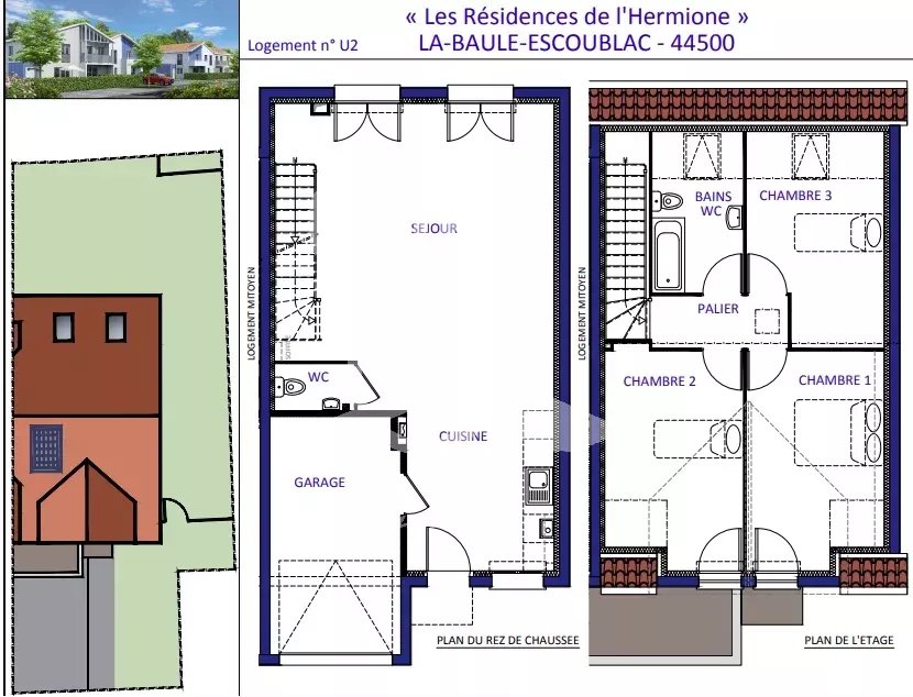 A 700 m des commerces et de la gare de PORNICHET. Les résidences de L'HERMIONE vous proposent 8 maisons en cours de construction, VENDUES EN L'ETAT FUTUR D'ACHEVEMENT, comprenant au rez-de-chaussée : une pièce à vivre de 37,40 m2, un wc, un gara...