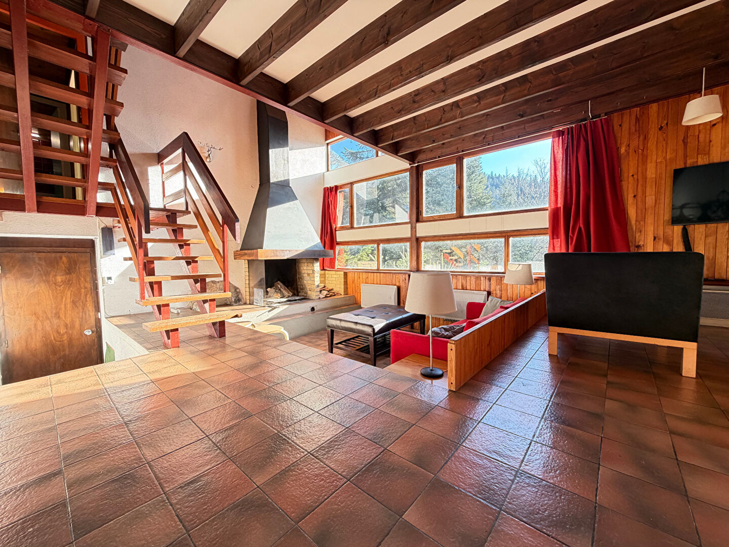 Situé à seulement 1,5 km du centre et à proximité de l'axe menant au domaine skiable, ce chalet offre un cadre pratique et recherché.