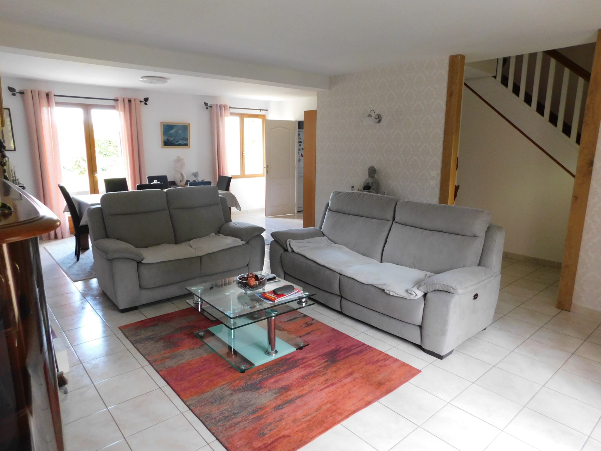 Maison construite en 2002 sur un beau terrain clos, plat et au calme. Au rez de chaussée : entrée, séjour à la double exposition de 41 m2 avec cheminée à foyer fermé, cuisine indépendante, toilettes, une chambre et une salle de douche. A l'étage, sur dall...