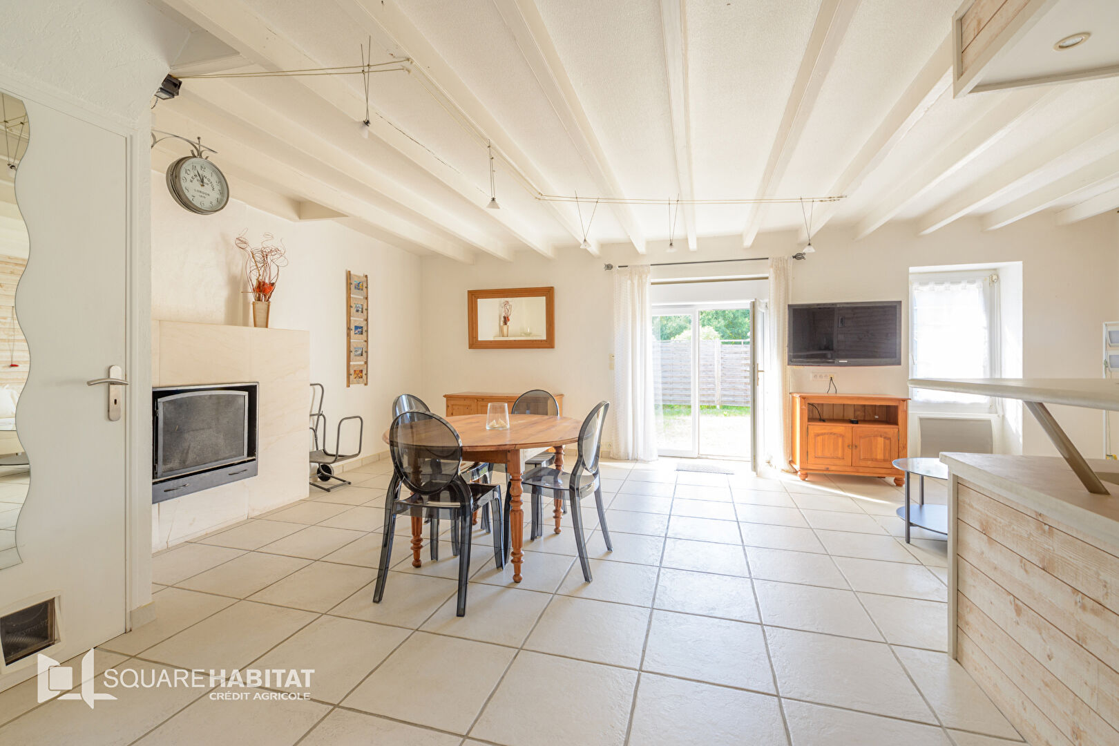Vous serez séduit par sa grande pièce de vie avec ses poutres et la lumière traversante.
