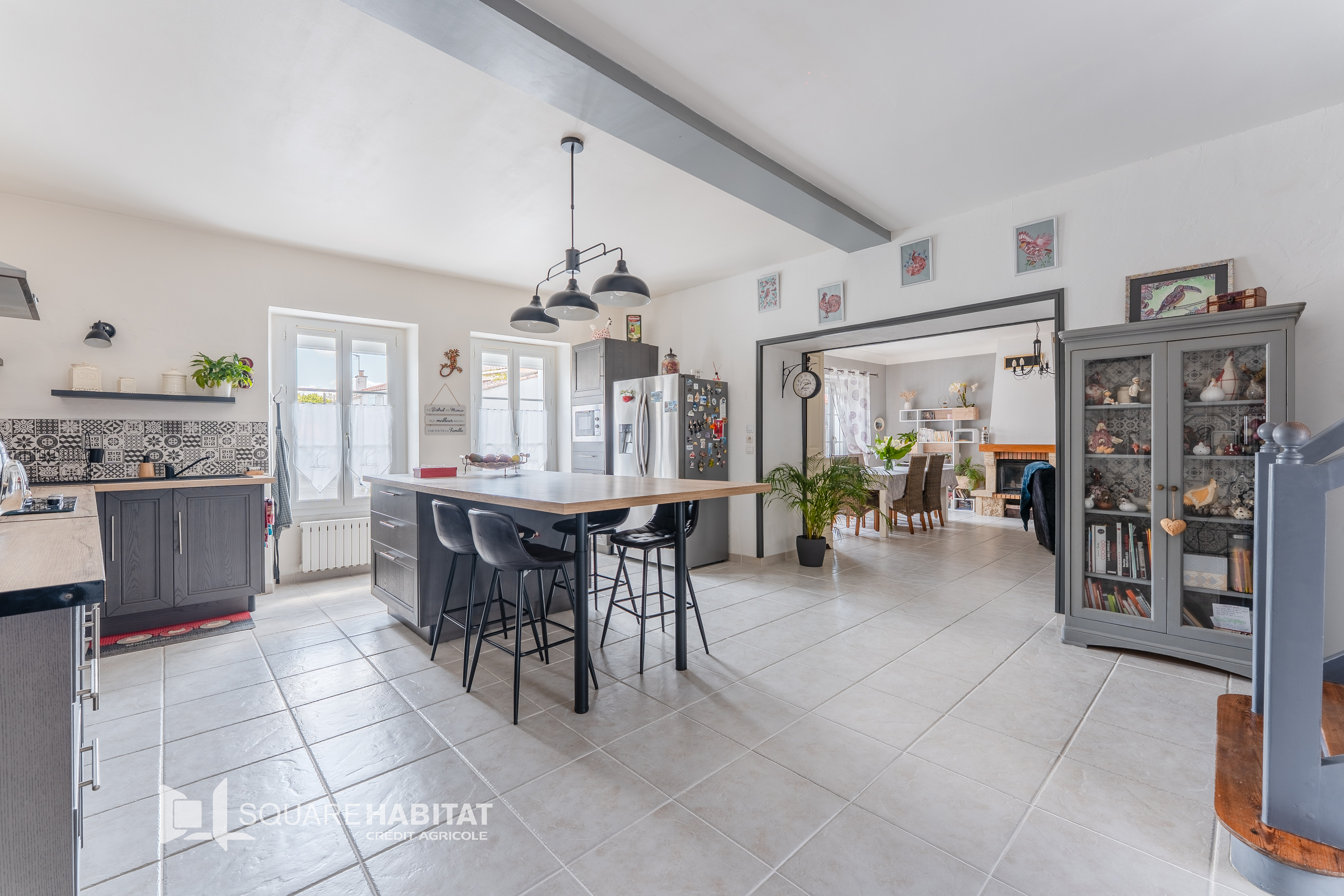 Située au calme, cette maison vous propose au rez-de-chaussée, un bel espace de vie avec cachet (poutres, cheminée) avec véranda de plus de 80 m², 2 chambres, une salle d'eau, un dressing, une lingerie et des WC. A l'étage, vous trouverez 3 chambres ...