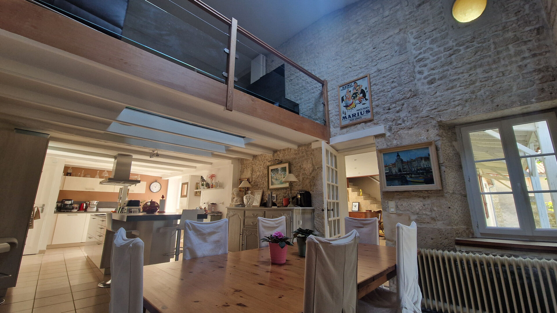 Secteur la Crèche, charmante maison ancienne rénovée d'environ 123 m², offrant au rez de chaussée: une entrée sur séjour/cuisine équipée, un salon, une suite parentale équipée d'un dressing, d'une salle d'eau privative avec accès patio, un...