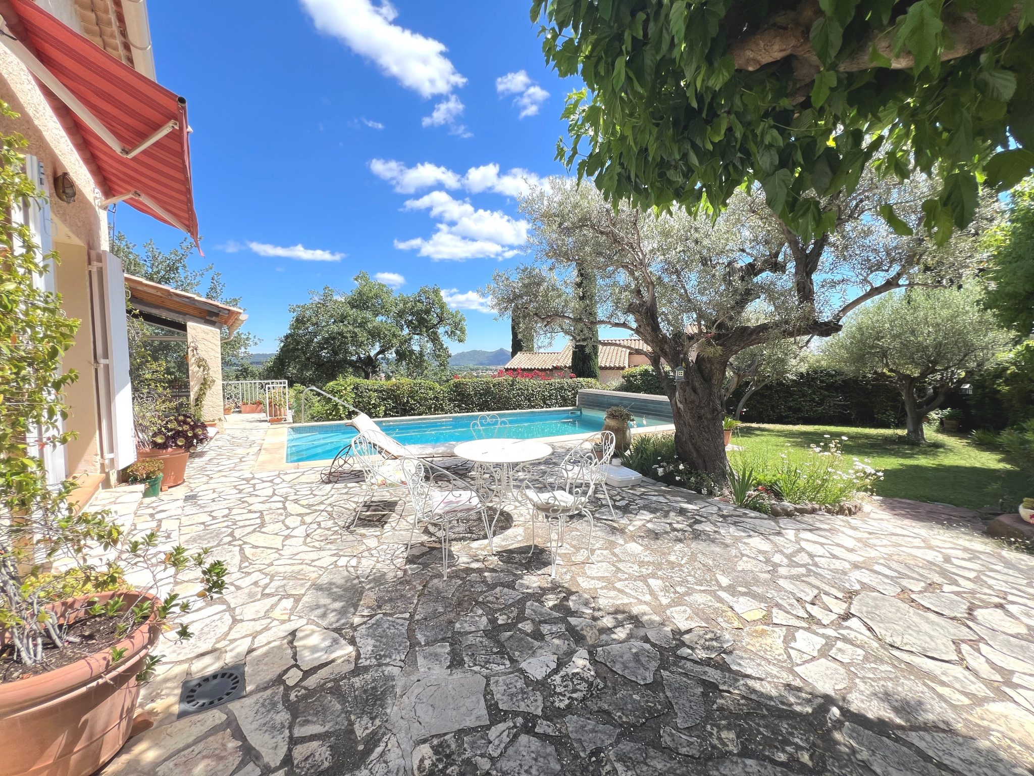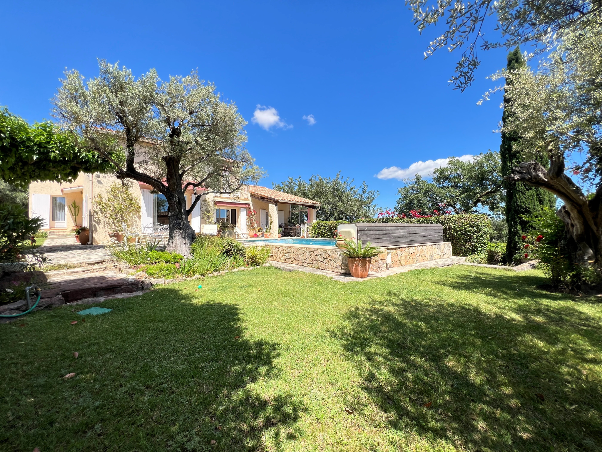 La Farlede au sein de l'Oliveraie du Partégal villa d'architecte de 173m2 habitables entiérement de plain pied exposée plein sud sans aucuns vis à vis sur un terrain arboré de 2062 m2 avec piscine .