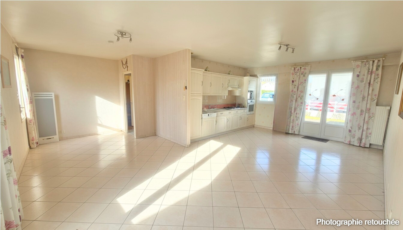 Cette maison comprend une grande pièce de vie lumineuse de plus de 33m2, 3 chambres, une salle d'eau, 2 wc, un bureau, un cellier.