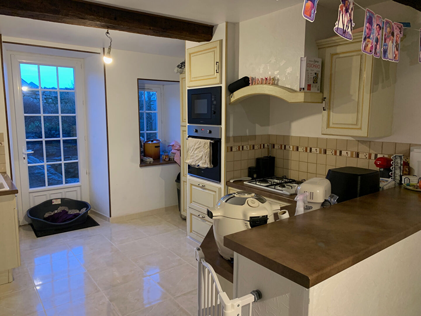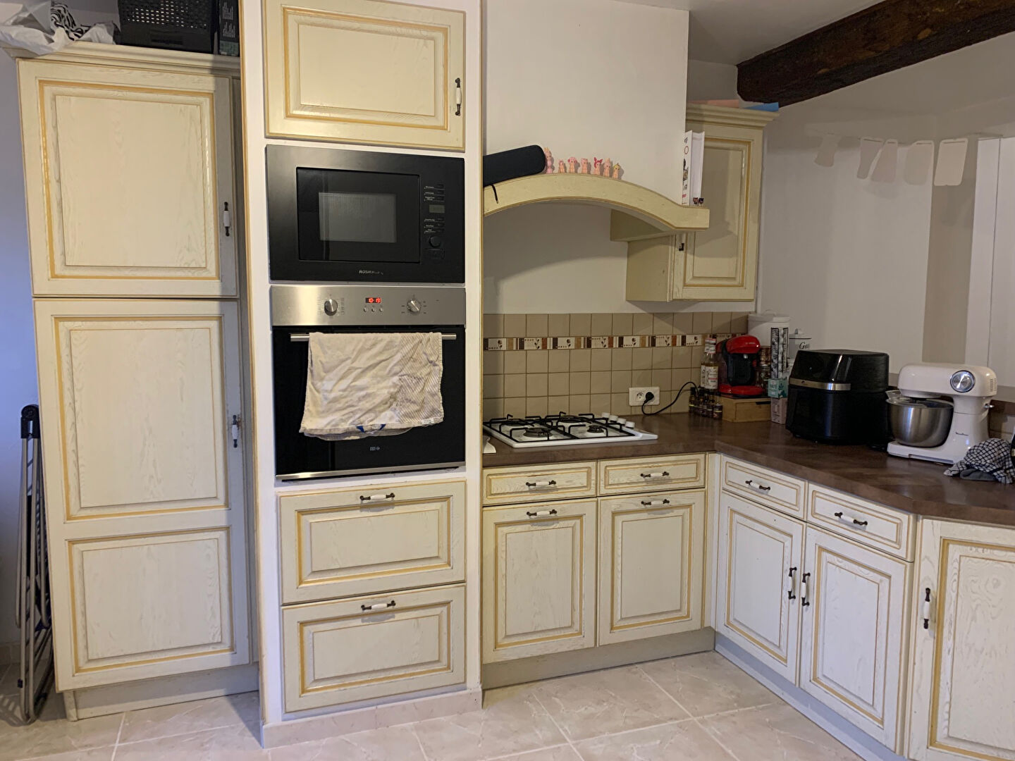 Cuisine équipée, salon, agréable pièce de vie, 2 chambres, un bureau, salle d'eau, wc.