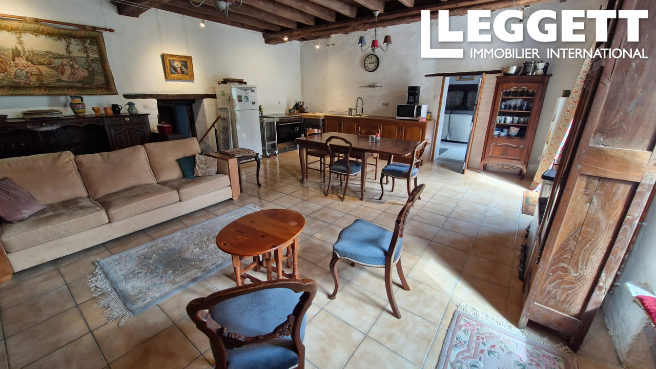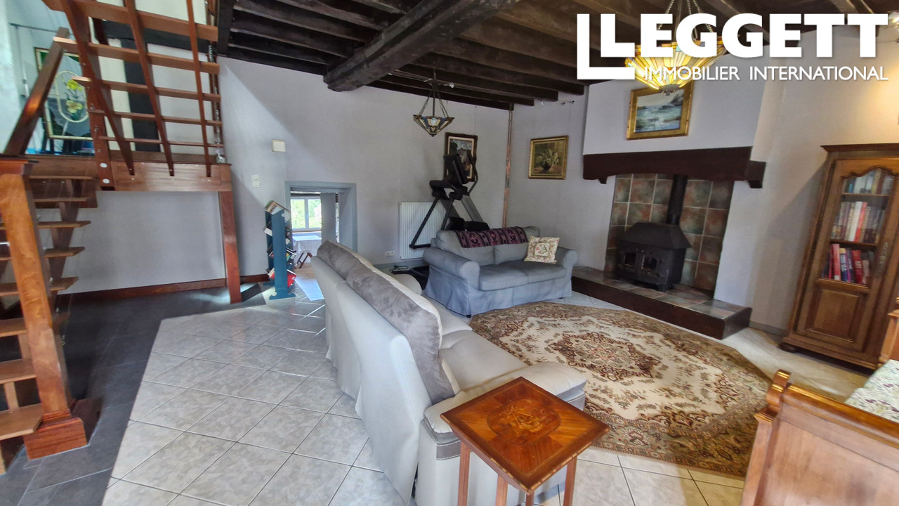 A33572JHK56 - Proche de la populaire La Gacilly, cette maison de campagne substantielle, avec un peu de terrain constructible, a un air de grandeur grâce à son grand salon de 60m2 + cheminée & une grande mezzanine. L'intérieur spacieux a 4 chambres do...