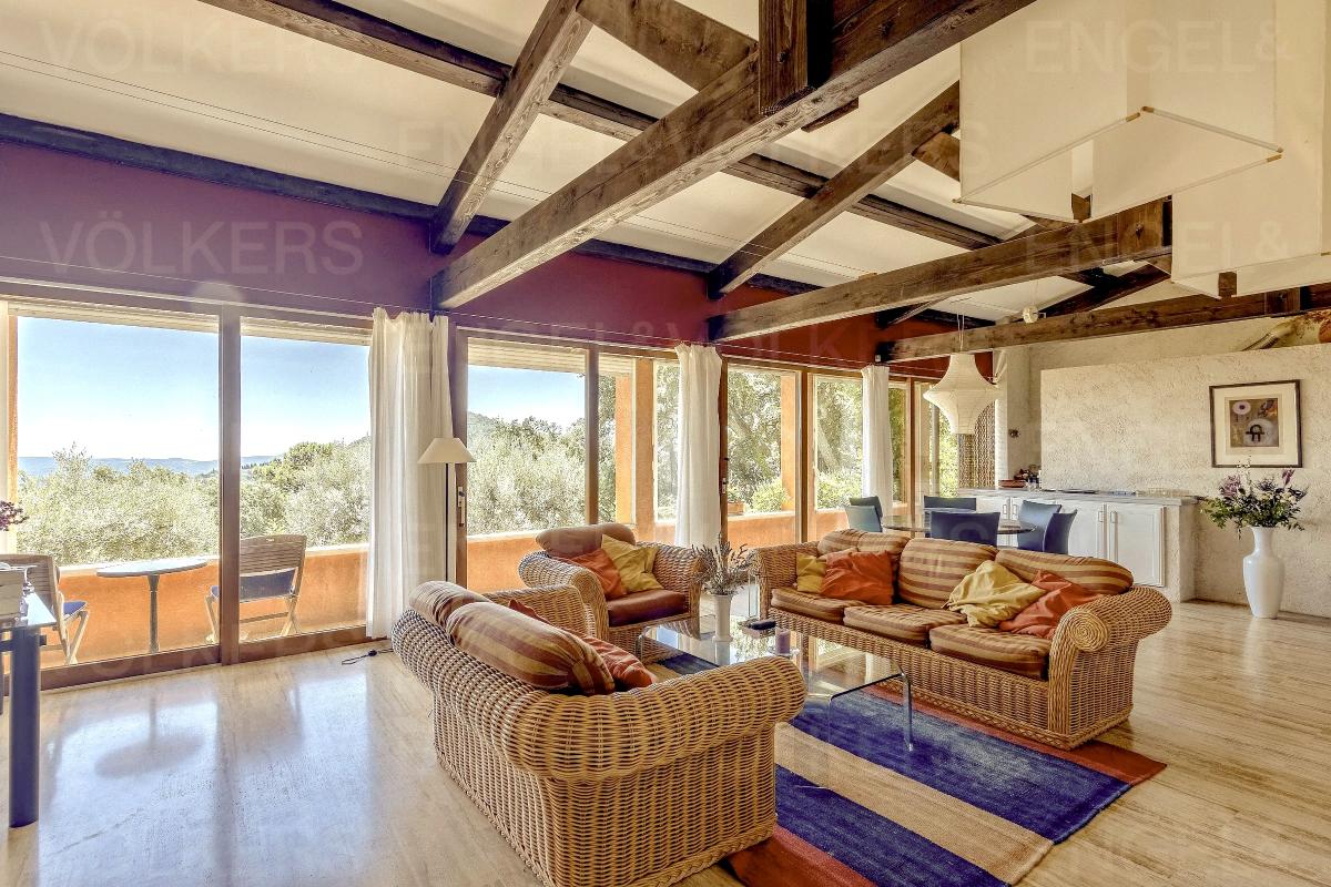 Dans un cadre naturel d'exception, cette superbe propriété de plain-pied offre une vue imprenable jusqu'au château de Grimaud. Édifiée sur un terrain de 2,5 hectares, elle séduit par son charme provençal et ses prestations haut de gamme.<BR>L...