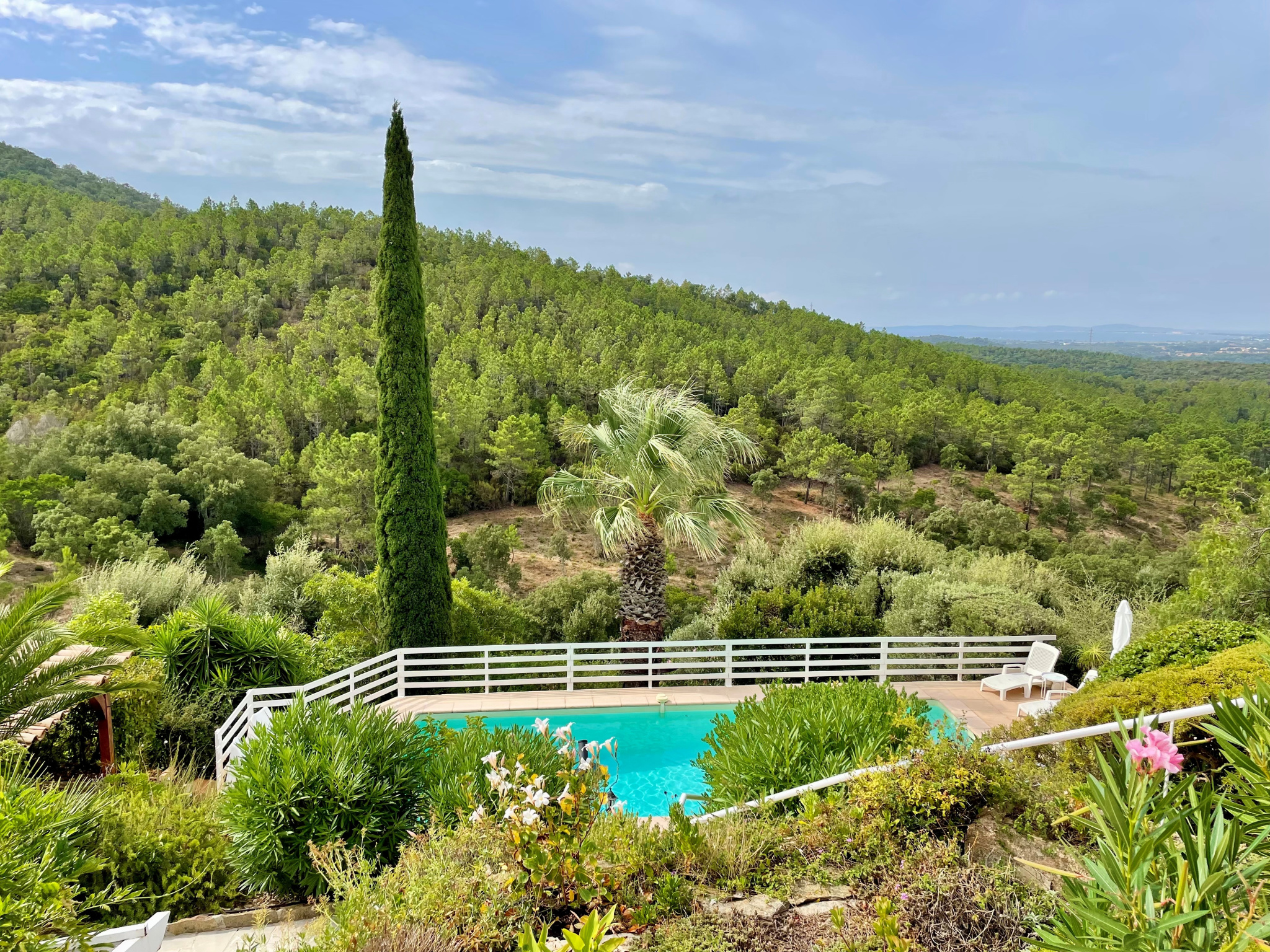 Décrouvrez à La Londe Les Maures cette belle bastide typiquement provençale au sein d'un magnifique parc boisé de plus de 2 hectares avec piscine et une superbe vue sur les collines de Valcros avec la mer en arrière-plan.