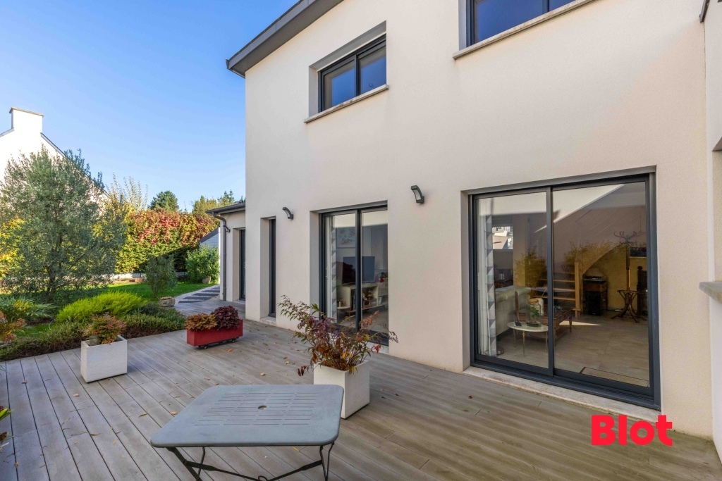 VENTE BLOT IMMOBILIER - Découvrez cette magnifique maison contemporaine à LA MEZIERE. Construite en 2016, cette propriété allie prestations haut de gamme et emplacement privilégié, proposant 165m² de confort de vie et plus de 435m² de terrain clos.