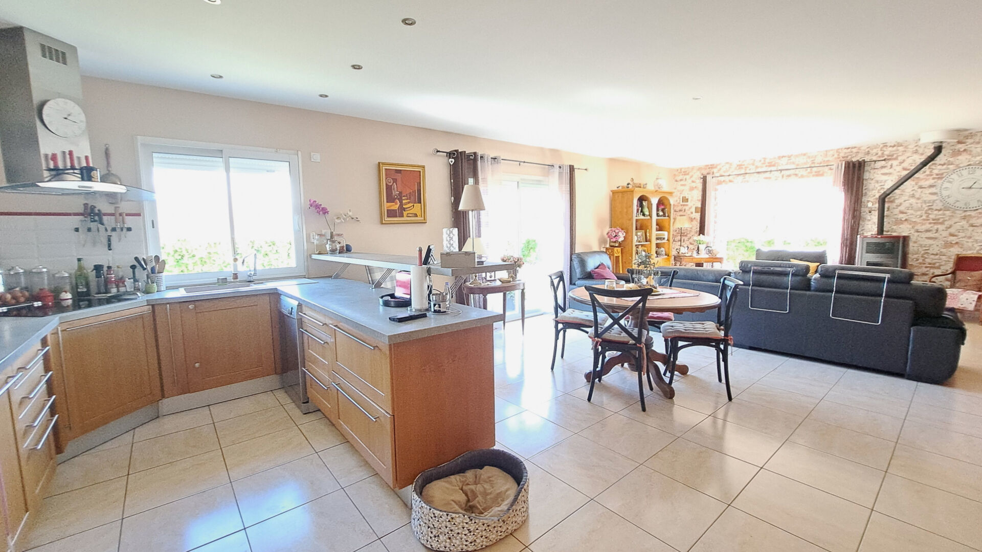 Dès l'entrée, un vaste hall dessert harmonieusement les pièces de vie : d'un côté un salon, salle à manger lumineux, de l'a...