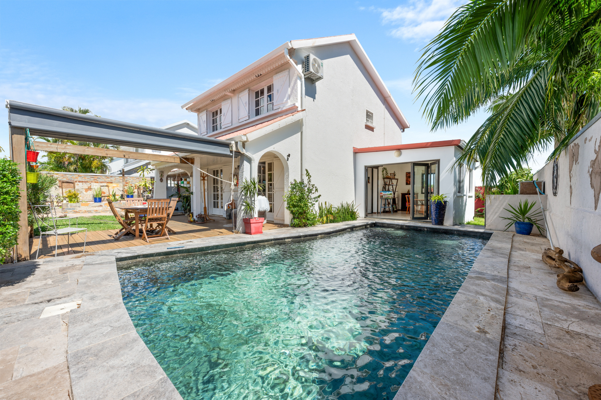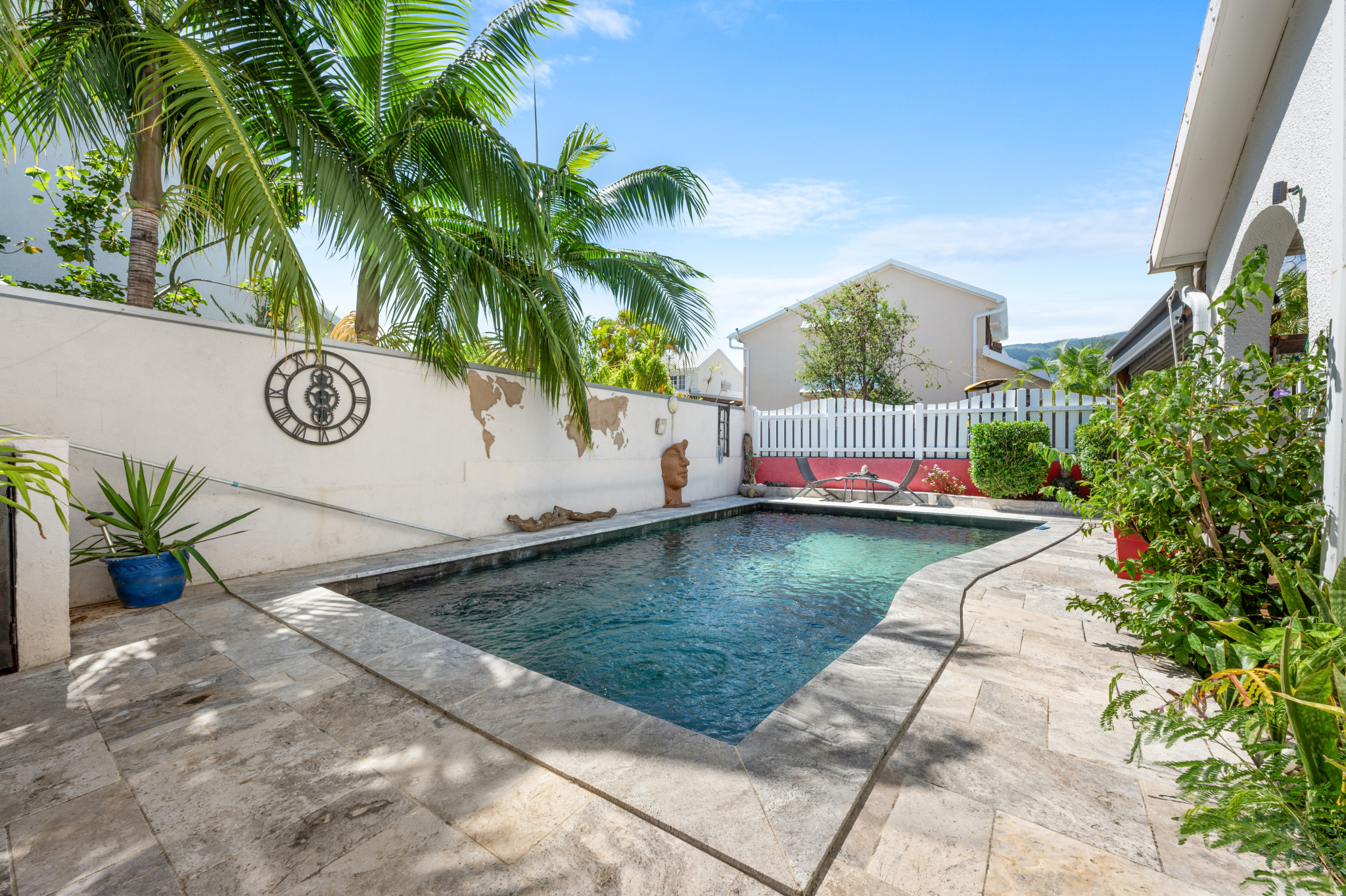 KOYTCHA Immo vous propose à la vente, sur un terrain de 535m² au sein d'un lotissement prisé à Sainte-Marie à 5 minutes à pied des écoles et proche de toutes les commodités, une villa de type 5 de plain-pied, avec 1 garage fermé et 1 piscine d'une su...