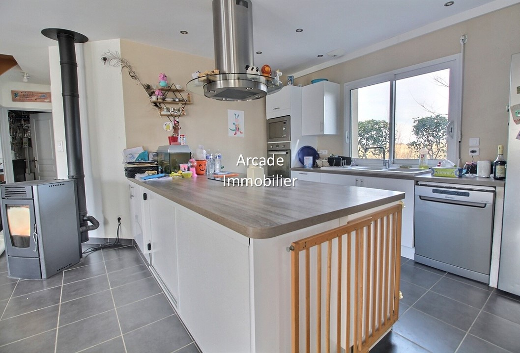Au rez-de-chaussée : séjour-salon avec poêle à granulés et cuisine américaine 61 m2 exposé sud, 2 chambres, dressing, salle de bains +...