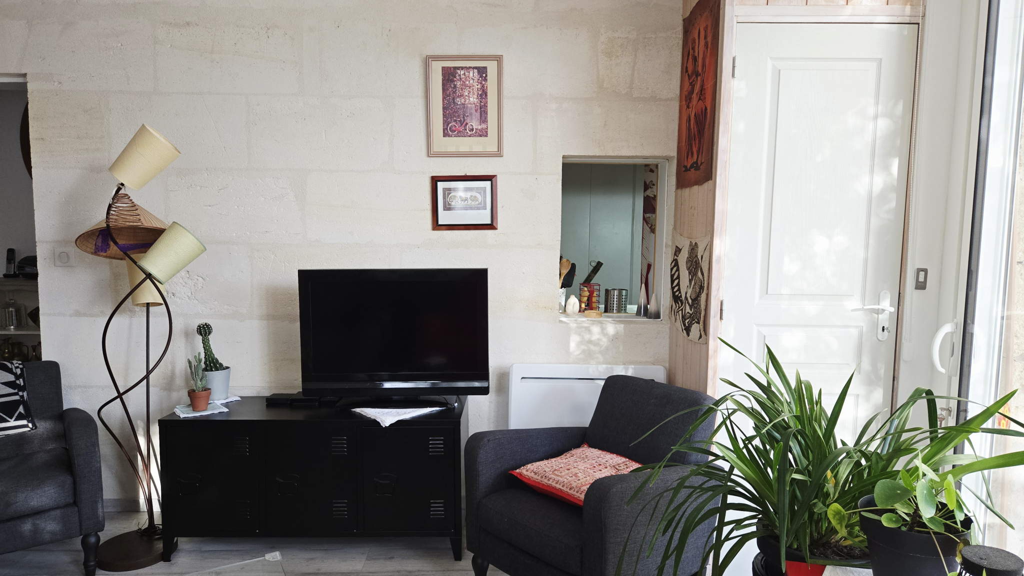 De part et d'autres de l'entrée, typique des girondines, vous trouverez d'un côté un joli séjour e...