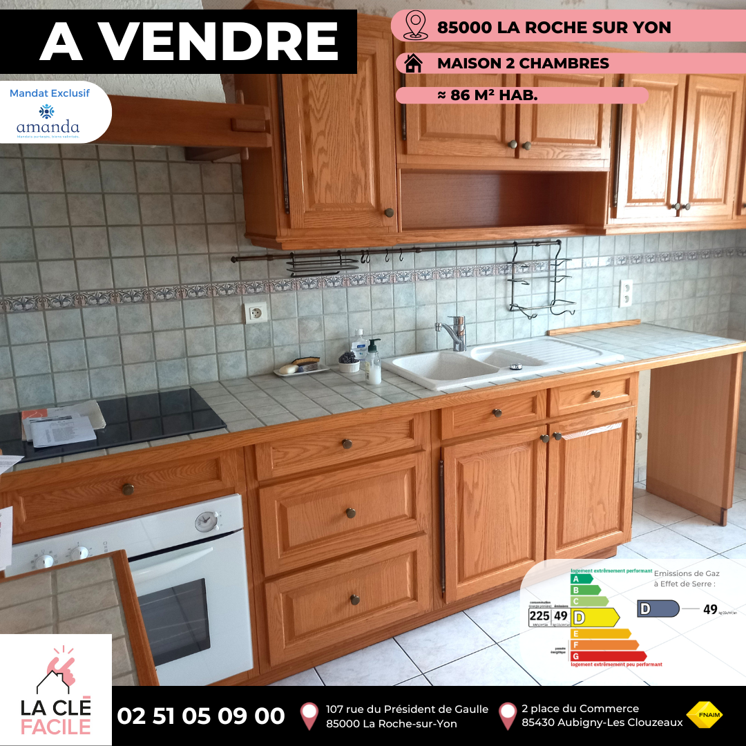 La Roche sur Yon, proche d'une zone commerciale et des écoles, à vendre maison familiale d'environ 100m² habitables avec quatre chambres, séjour et cuisine séparée aménagée équipée.
