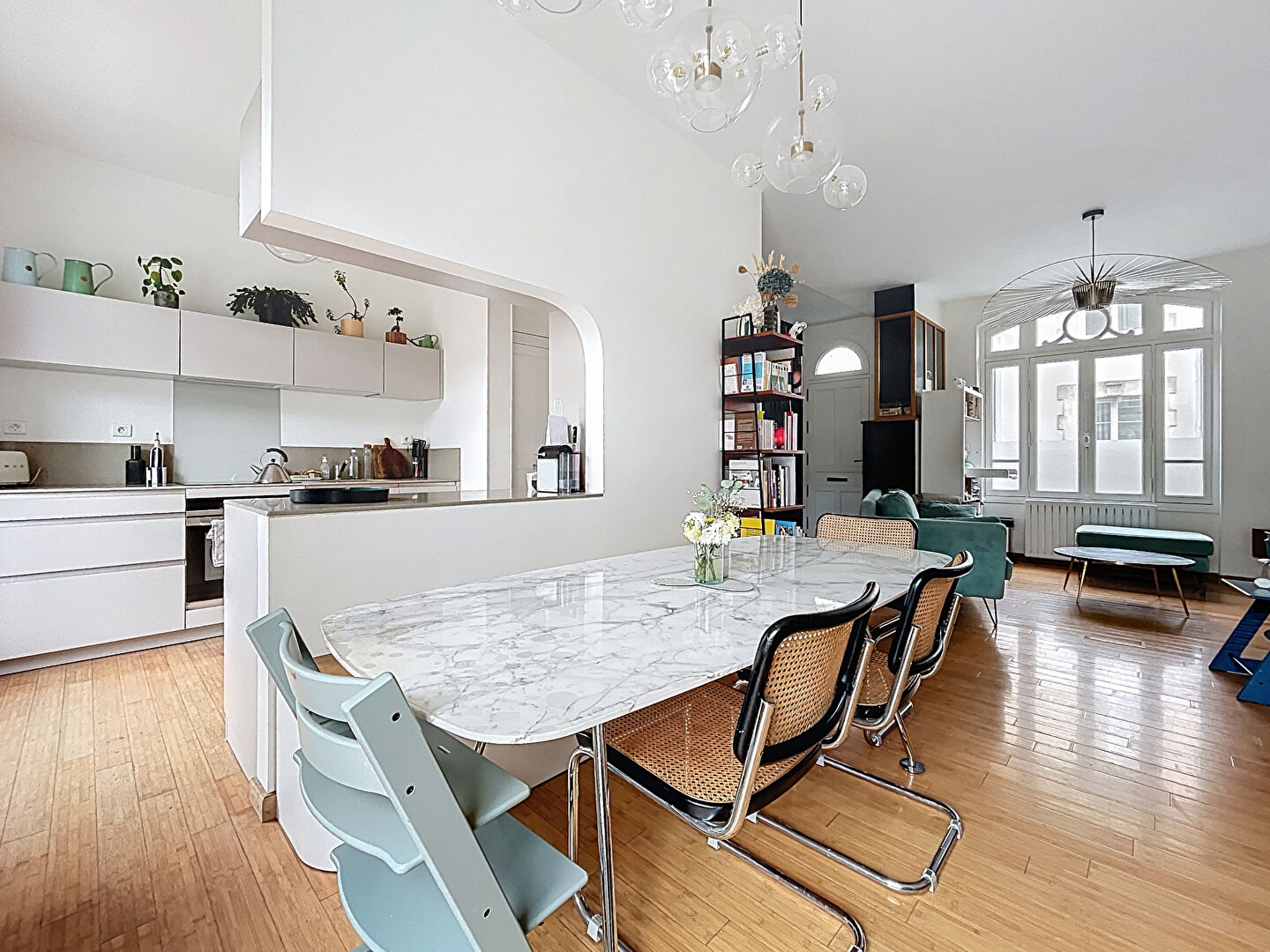 Trés belle rénovation pour cette grande échoppe qui allie le cachet de l'ancien et le confort du contemporain. Elle dispose donc de plain pieds, d'une entrée , d'un magnifique salon avec cuisine ouverte, le tout orienté ouest pour une superficie...