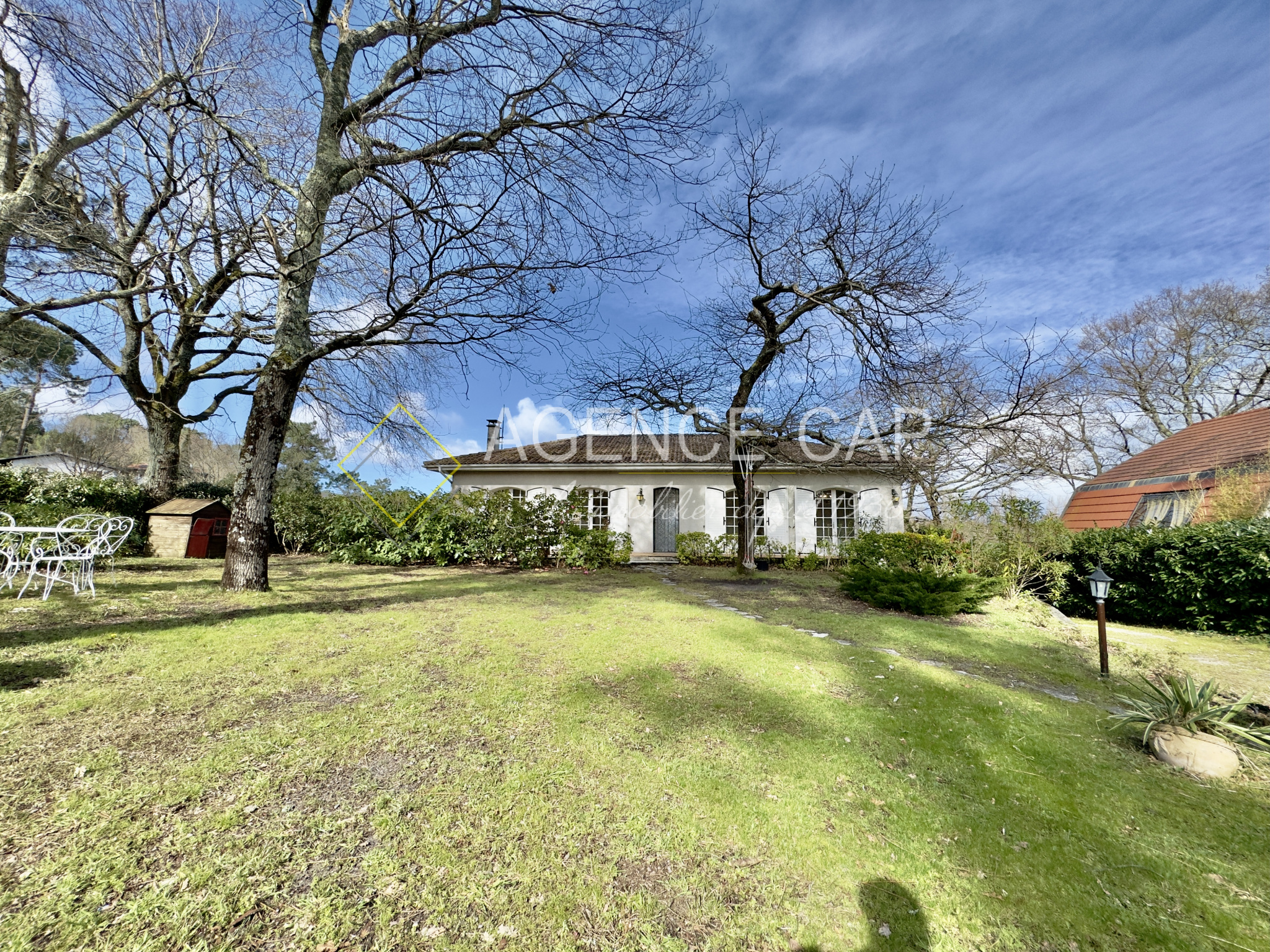 LA TESTE DE BUCH - SECTEUR CAILLIVOLE. Maison de plain-pied lumineuse, à deux pas des commerces !<BR>Séjour avec cheminée, cuisine ouverte, 3 chambres, salle d?eau et rangements optimisés. <BR>Extérieur avec garage, cabanon et terrain piscinable po...
