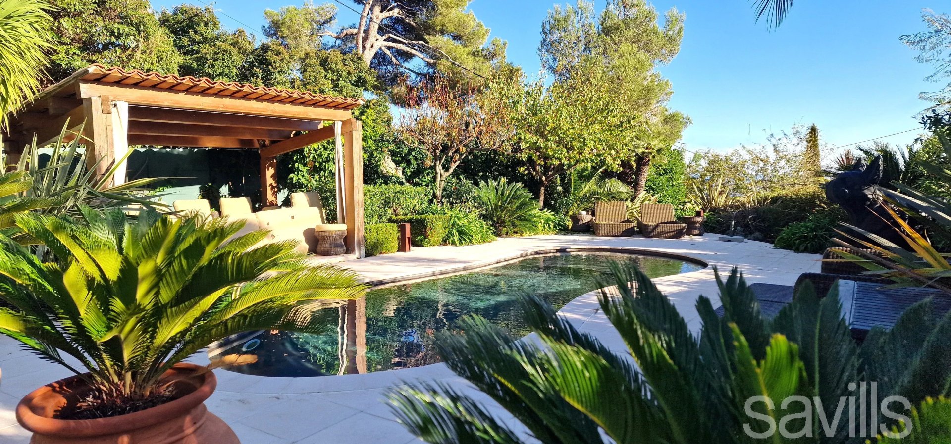 Nichée dans un jardin arboré de 720 m², elle offre une terrasse avec piscine et une vue imprenable sur les montagnes et l...