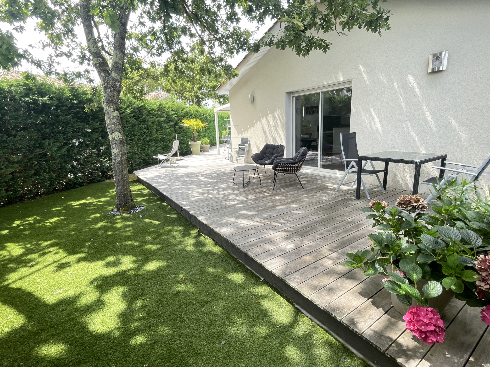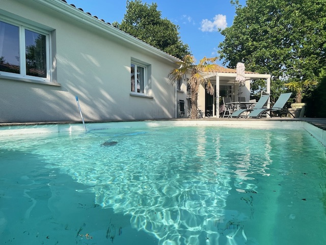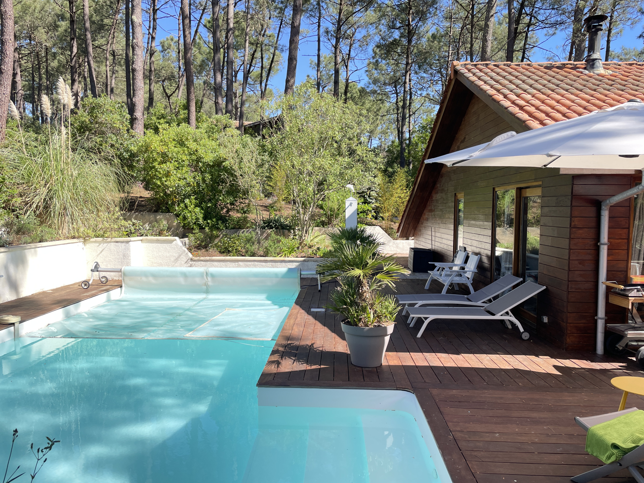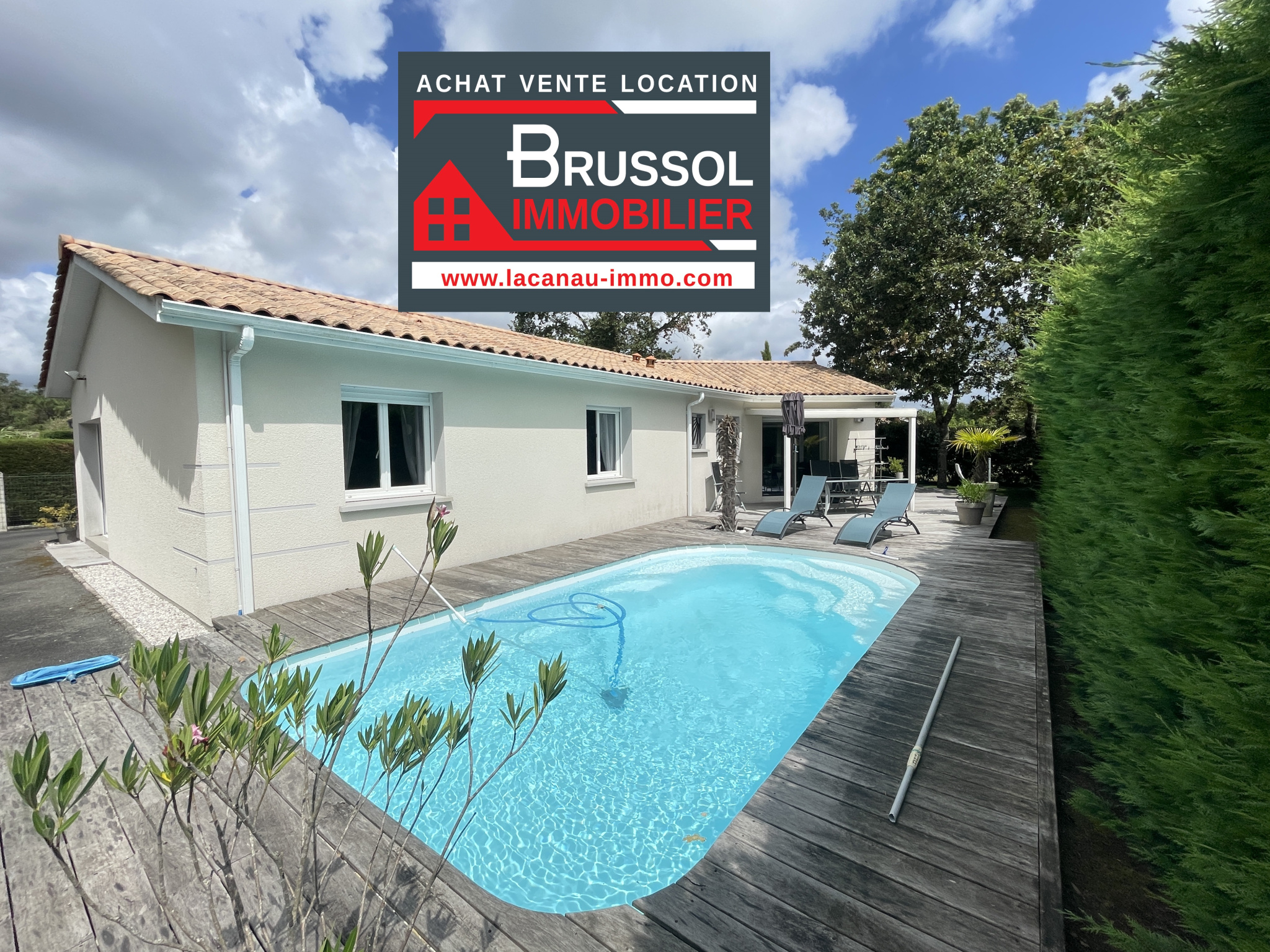 L'Agence Cadre d'Envies vous invite à découvrir cette charmante maison traditionnelle de 115 m², nichée sur une belle parcelle arborée de 745 m², avec piscine et pergola bioclimatique, au coeur d'un environnement calme et résidentiel de Lacanau-...