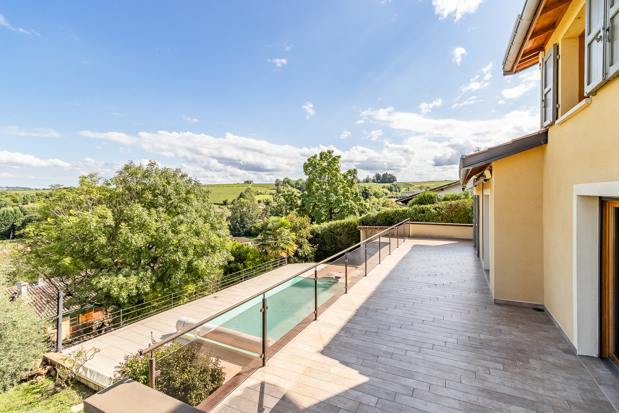 C'est un emplacement exceptionnel que je vous propose pour cette villa des années 70. Pas de voisinage proche et pourtant si près du village ! La vue est imprenable et ouverte sur la chaine des Alpes et le Beaujolais. La maison d...
