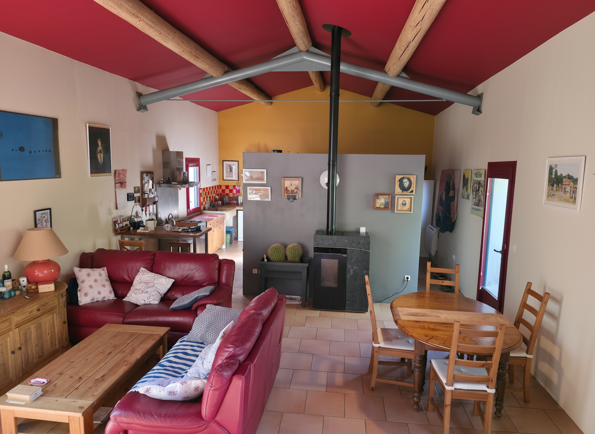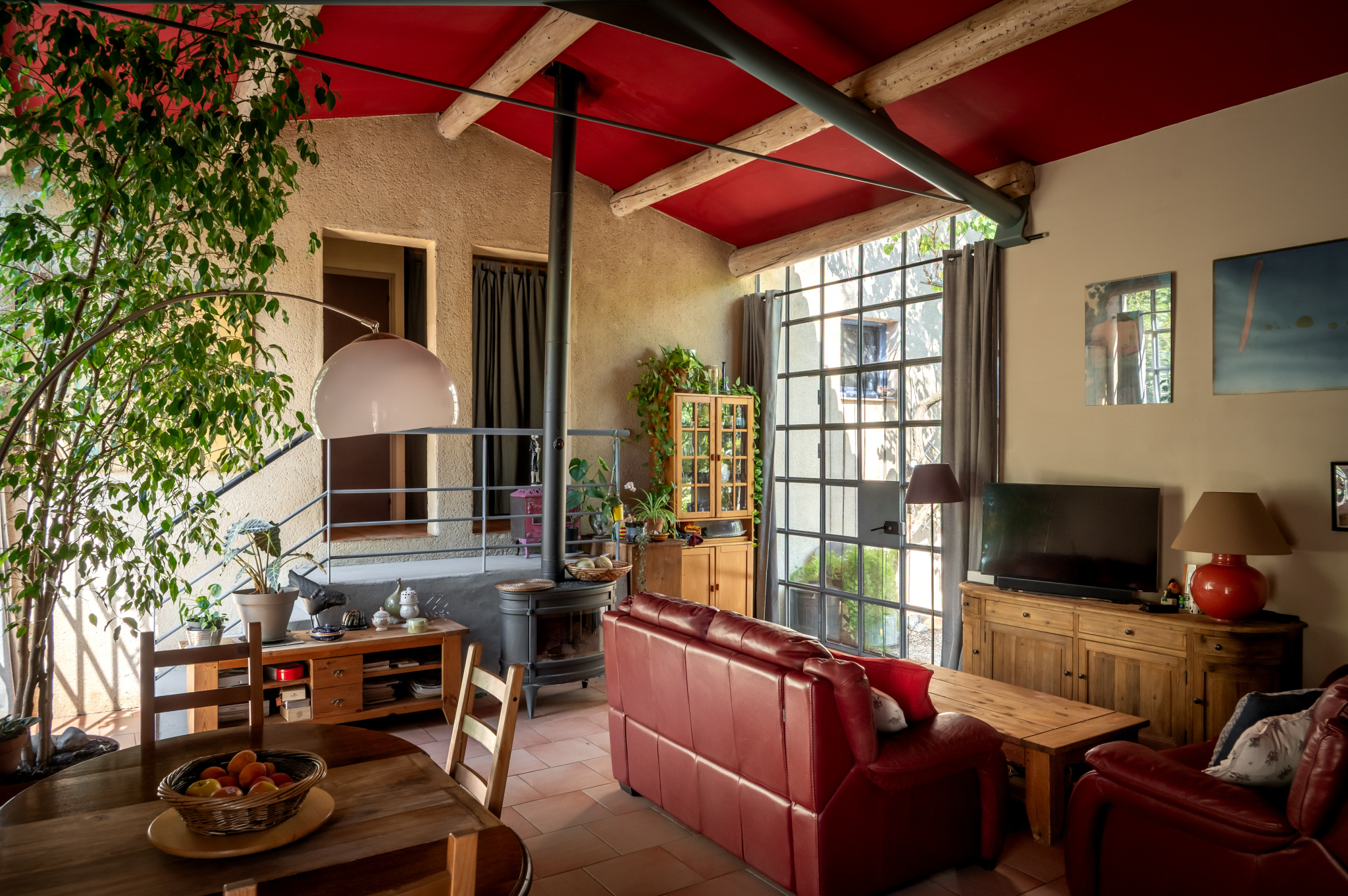 La pièce de vie, organisée dans un esprit loft, bénéficie de bea...