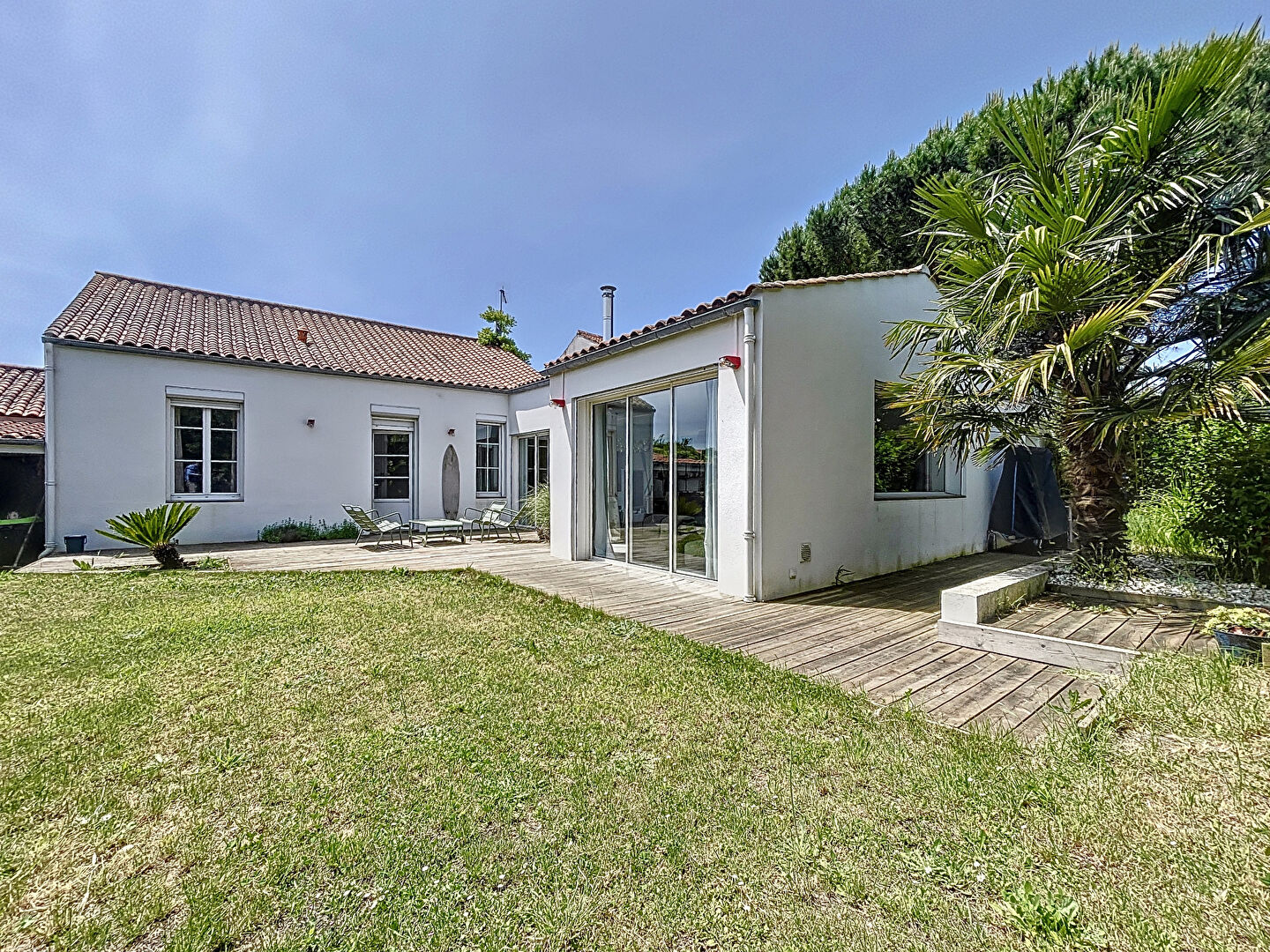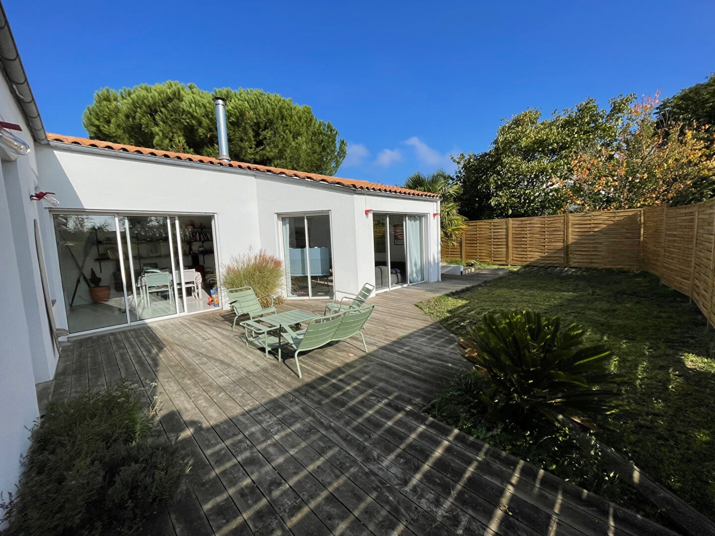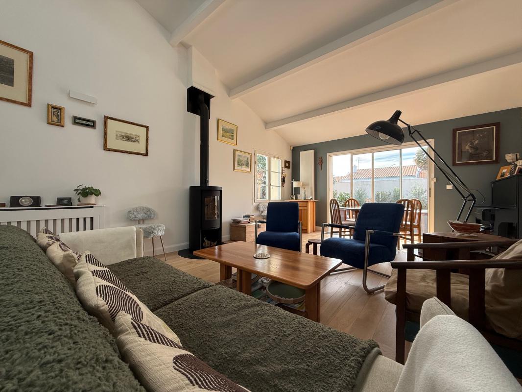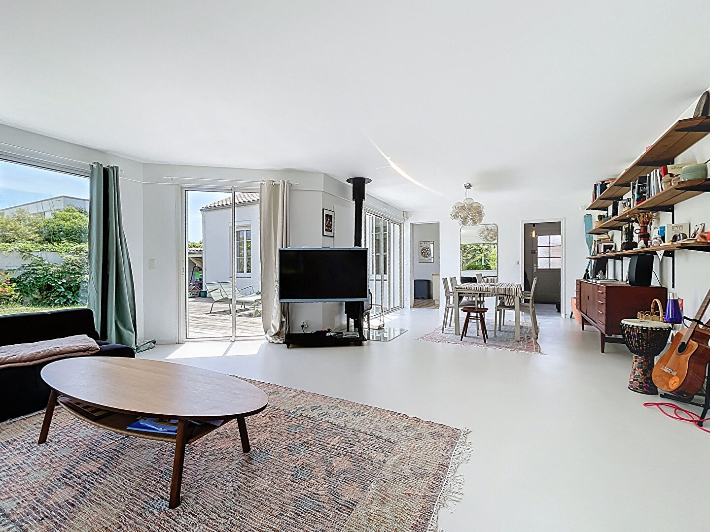 Grande maison familiale au bord de La Rochelle. Cette maison de plain pied est composée d'un hall d'entrée avec placards et WC, un séjour double avec cheminée, une cuisine aménagée et équipée avec un cellier aménagé et une pièce de rangement. Un coul...