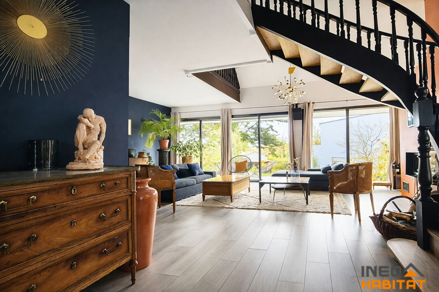 Située à Laillé, dans un environnement calme et recherché, cette spacieuse maison d'architecte construite en 1970 développe environ 307m² habitables sur un magnifique terrain arboré de plus de 1500 m².