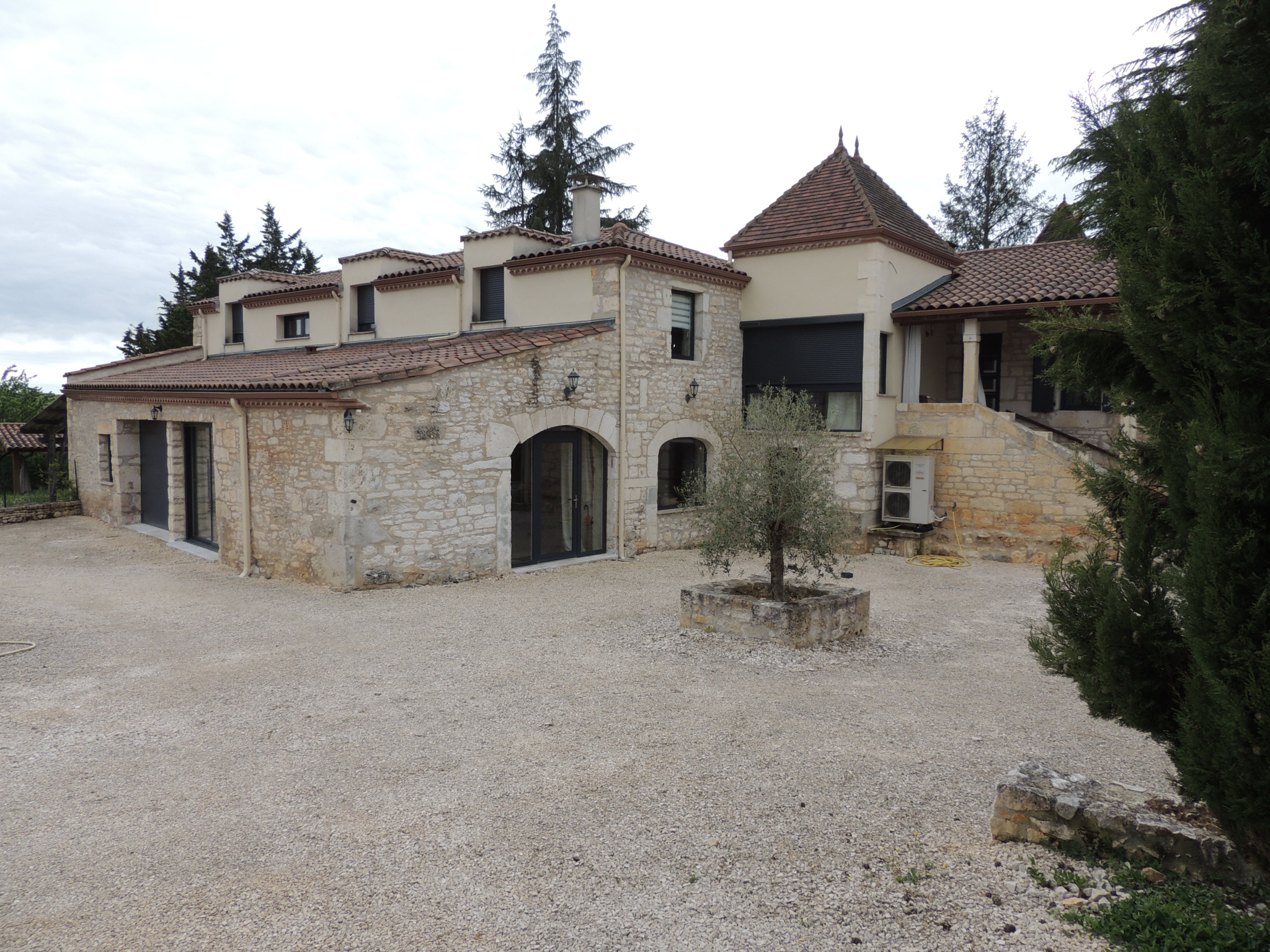 46230 Lalbenque à 10 minutes, maison de caractère en pierre flanquée d'un pigeonnier de près de 250m², 9 pièces, 4 chambres, 2 logements possibles dont un en plain-pied avec piscine sur 3600m² de terrain environ.