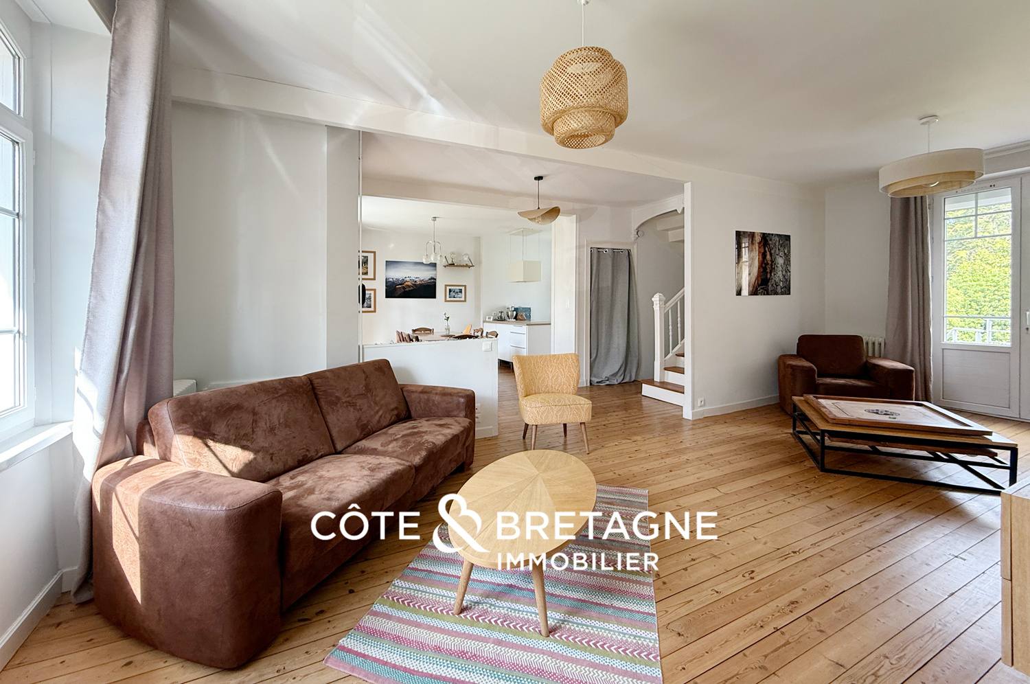 7564 : LAMBALLE : Centre ville à pied pour cette maison d'architecte avec vie de plain-pied lumineuse bénéficiant d'un bel espace de vie de plus de 40 m² avec cuisine ouverte, aménagée et équipée, une suite parentale, arrière cuisine, WC séparé avec...