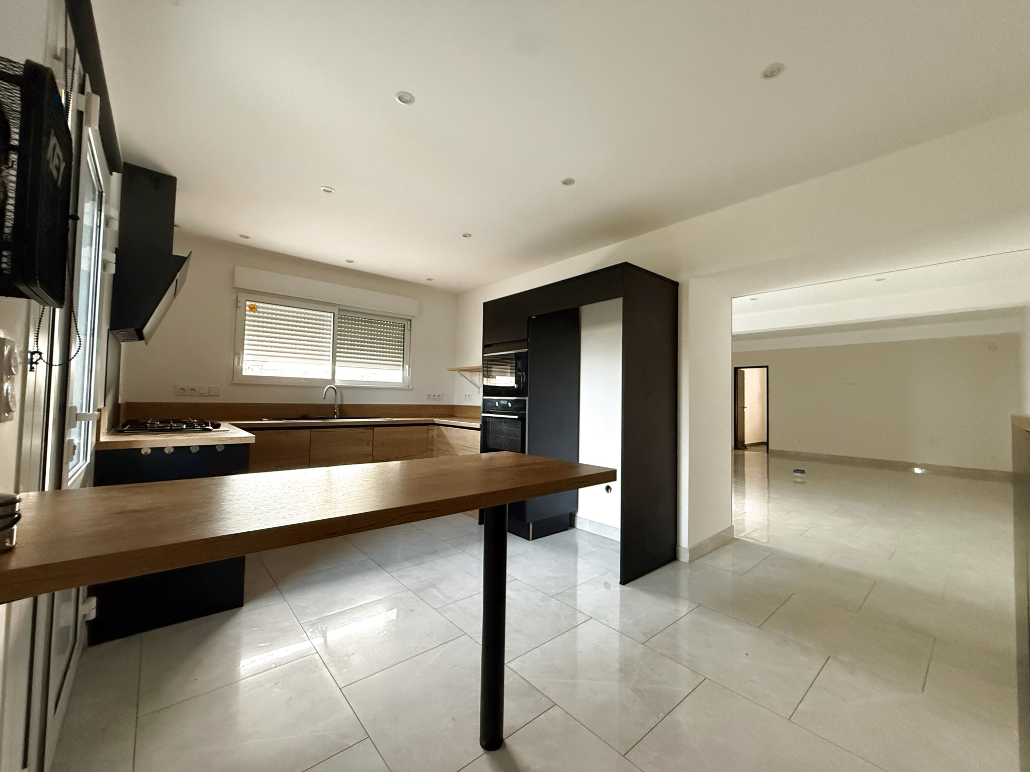 L'espace de vie, lumineux et ouvert, comprend un vaste salon ainsi qu'une cuisine moderne et entièrement aménagée.