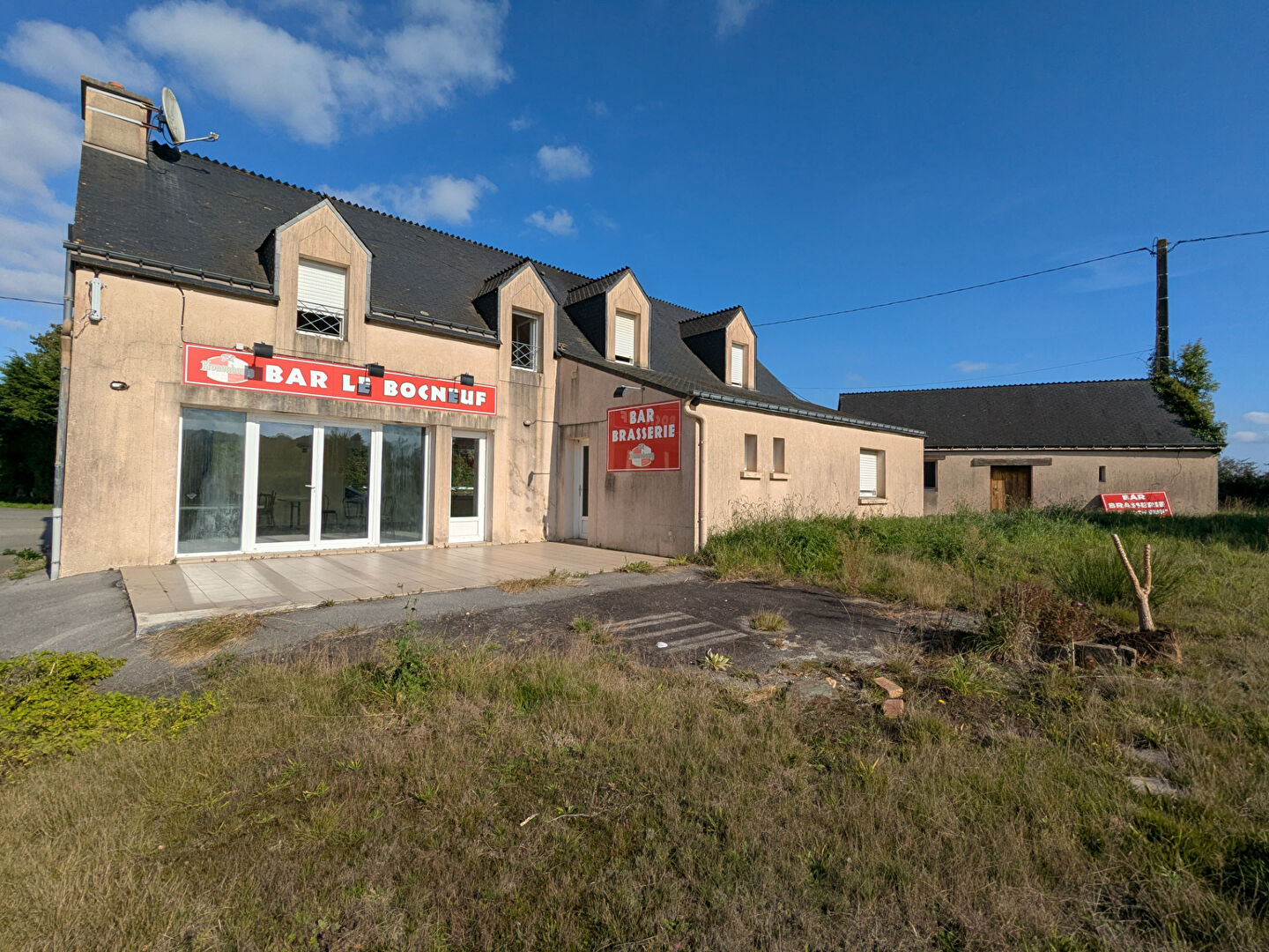 Immeuble libre avec ancien commerce (bar), idéal pour grande habitation ou usage mixte (Licence IV disponible à acheter en sus). salle de bar, grande cuisine nue, autre pièce, et bloc sanitaire. Terrasse. Etage : grand dégagement, 3 belles chambres, salle de b...