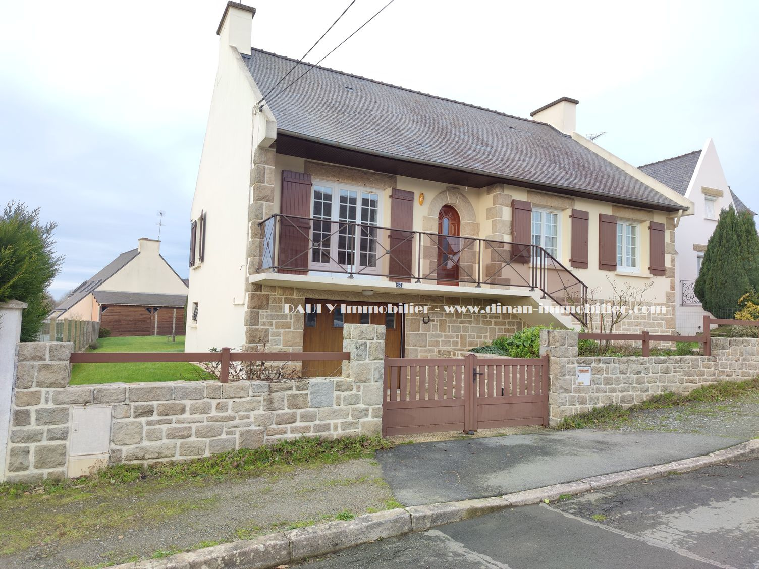 À vendre chez Christelle Mesnage, proche de Dinan, belle maison en pierre de 93m² habitables offrant : Une cuisine équipée ouverte sur le séjour avec placard, une buanderie, 2 chambres dont une avec placard, un bureau, 2 wc, une salle d'eau équipée, un gr...