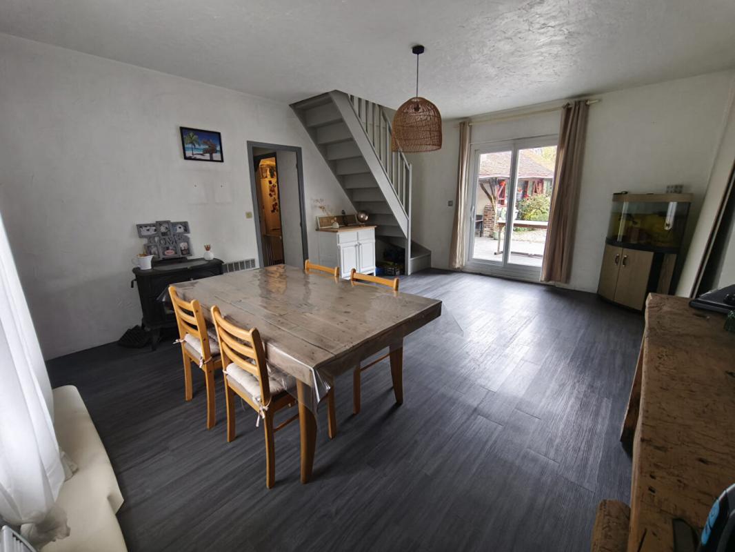 Une maison d'habitation type longère avec énormément de cachet ( poutres / tomettes / cheminées ancienne ... ) comprenant entrée sur cuisine ouverte avec salle à manger...