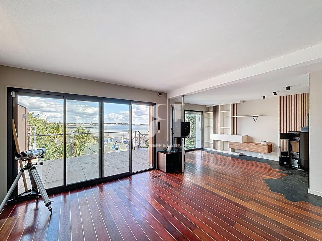 A quelques pas du littoral, dans un quartier calme et prisé de Larmor-Plage, cette maison contemporaine vous séduira par sa vue mer et sa belle lumière.
