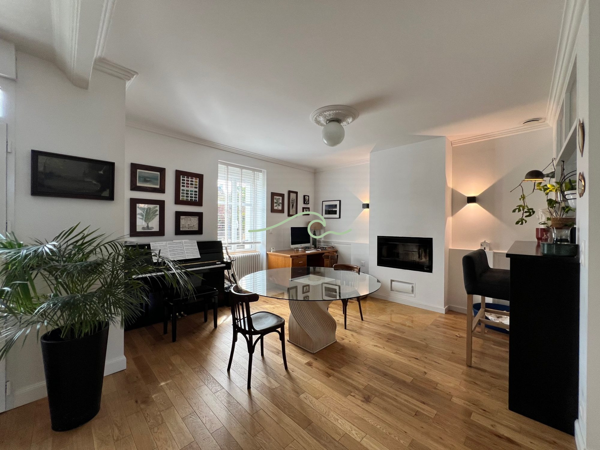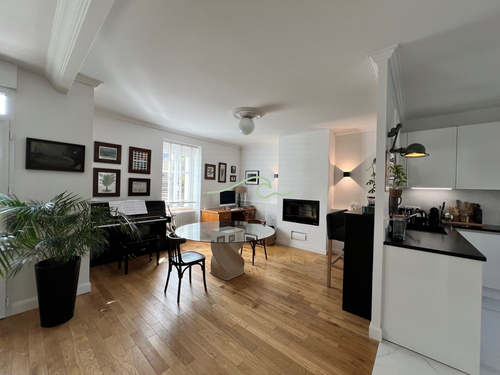 Au rez-de-chaussée, elle s'ouvre sur un vaste salon lumineux, prolongé par un boudoir cosy ...