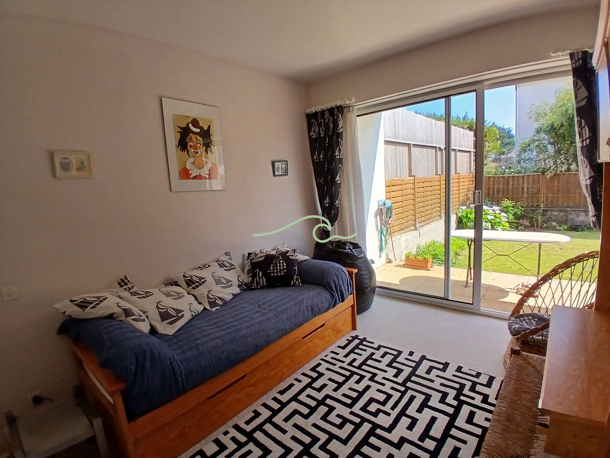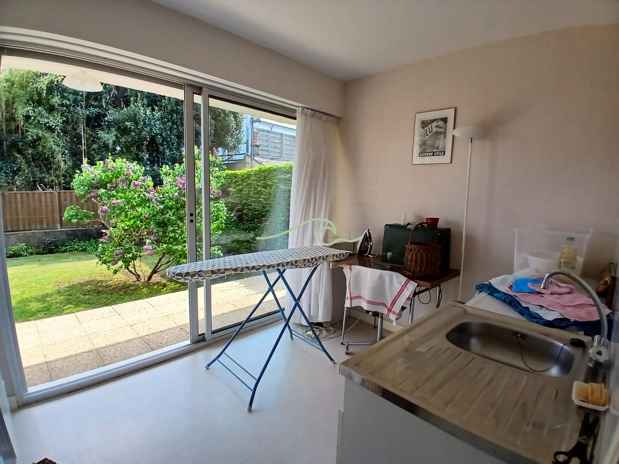 A deux pas de la plage charmante maison ouvrant sur un jardin intime. De plain pied elle se compose d'un séjour/salon avec poele à bois, cuisine équipée, chambre et salle d'eau. A l'étage deux chambres avec balcon dont une avec dressing, salle d...