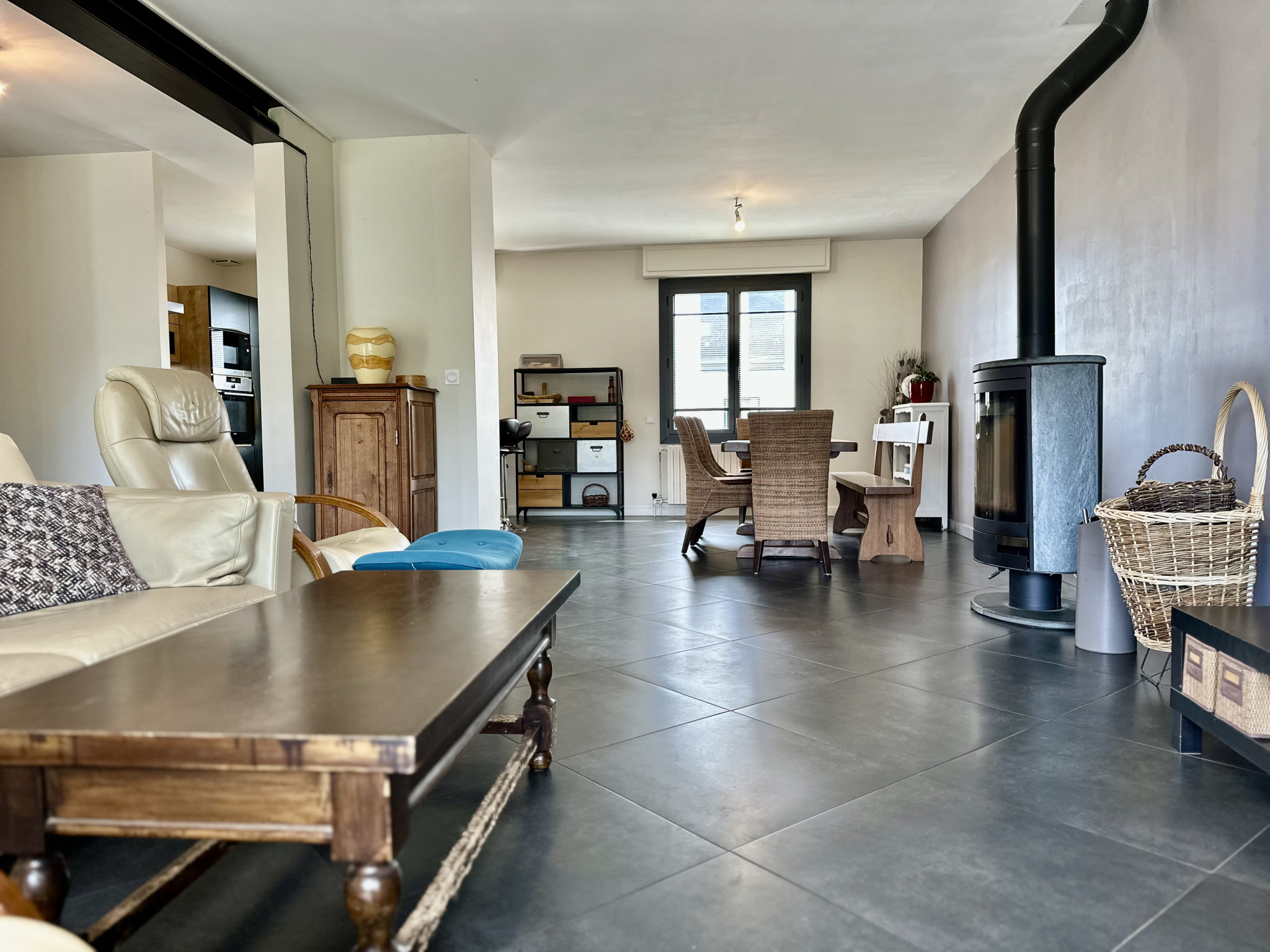 Maison de plain pied située dans un cadre paisible et verdoyant. Au rez-de-chaussée, un espace de vie spacieux et lumineux, cuisine aménagée et équipée, une chambre, salle de bains et WC. A l'étage, trois chambres, salle d'eau, WC et un grenier aména...