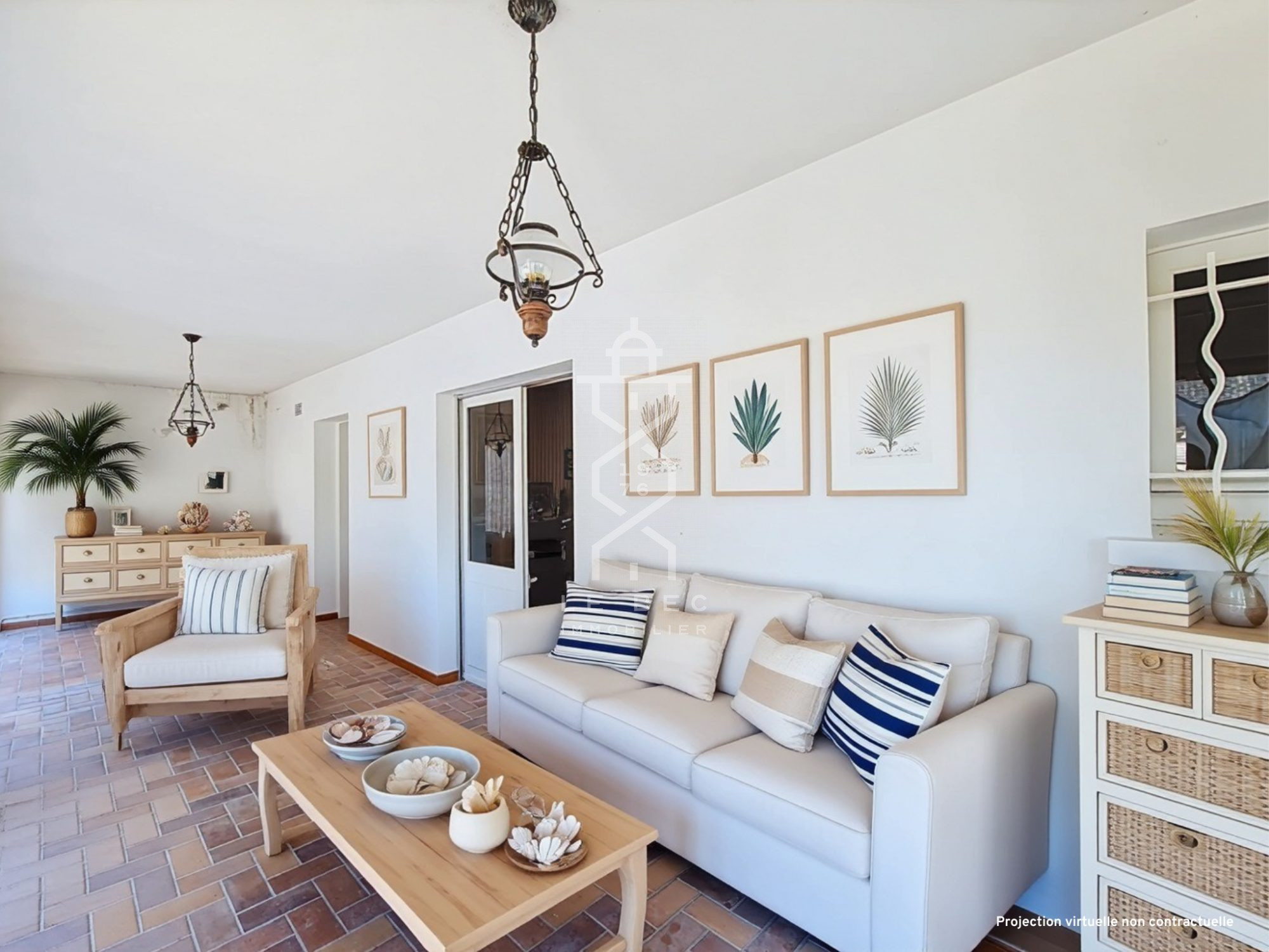 À moins d'un kilomètre du rivage, dans un environnement résidentiel recherché et particulièrement calme, cette maison contemporaine d'environ 187 m², édifiée en 2000 sur un terrain paysagé d'e...