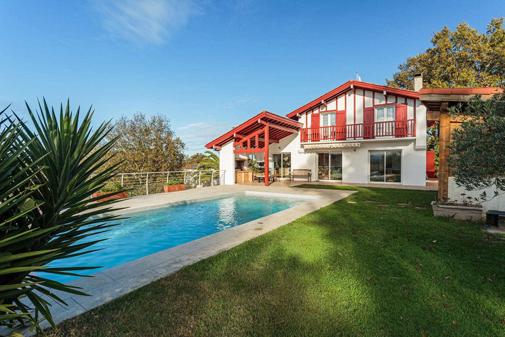 Magnifique maison traditionnelle située sur les hauteurs de Larressore, aucun vis à vis, vue dégagée sur la Rhune. Elle comprend un très grand salon-cuisine donnant sur la terrasse et la piscine puis une suite parentale au rez-de-chaussée. Trois chambres à l...