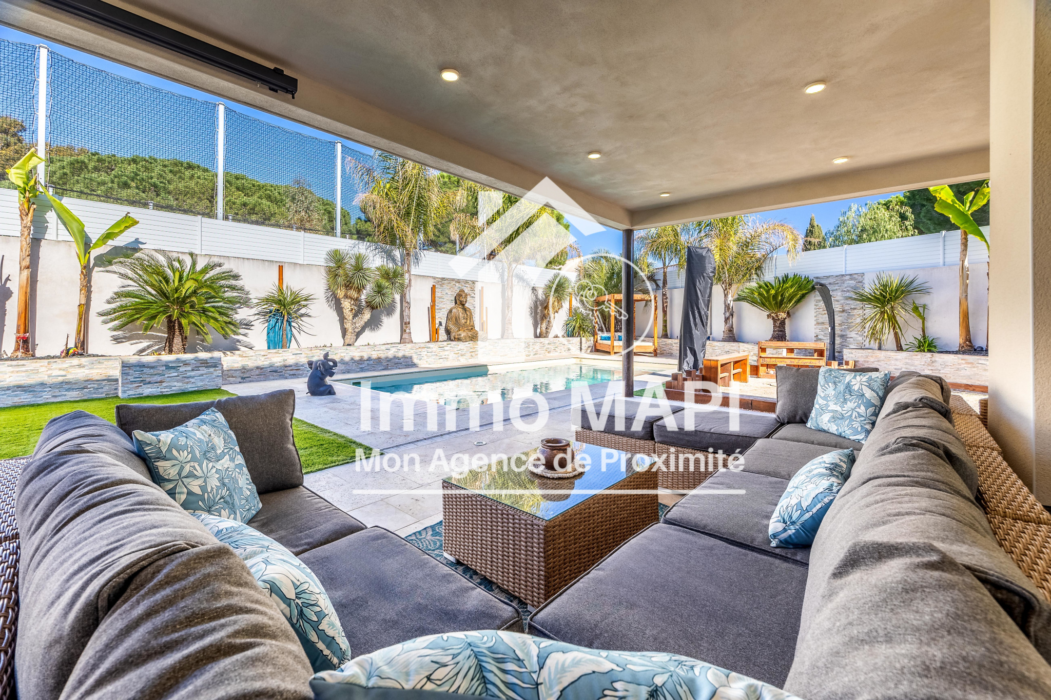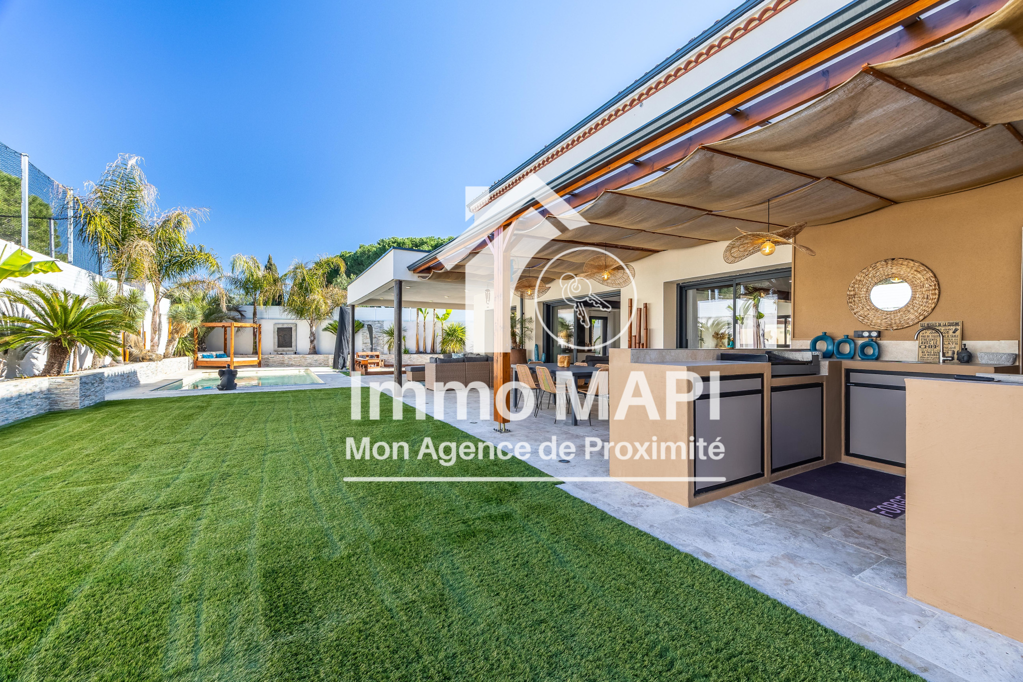 MONTPELLIER LATTES - A ÉTÉ VENDUE PAR CÔTÉ PARTICULIERS IMMOTURBO -Villa d'architecte rénovée de 7 pièces de 174m²/623m², 5 chambres dont une suite parentale au rez-de-chaussée, séjour 55m², cuisine équipée, garage, véranda avec spa, piscine, solarium, be...