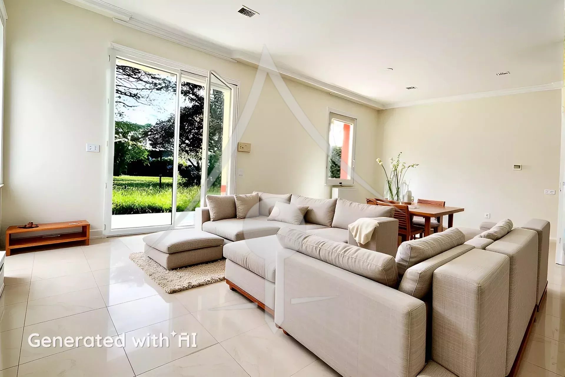 Dès l’entrée, la lumière guide la visite : une vaste pièce de vie s’ouvre naturellement sur la terrasse couverte et la piscine, créant un véritable espace de réception pour les déjeuners d’été et les soirées entre amis. La cuisine équipée, moderne et fonctionn...
