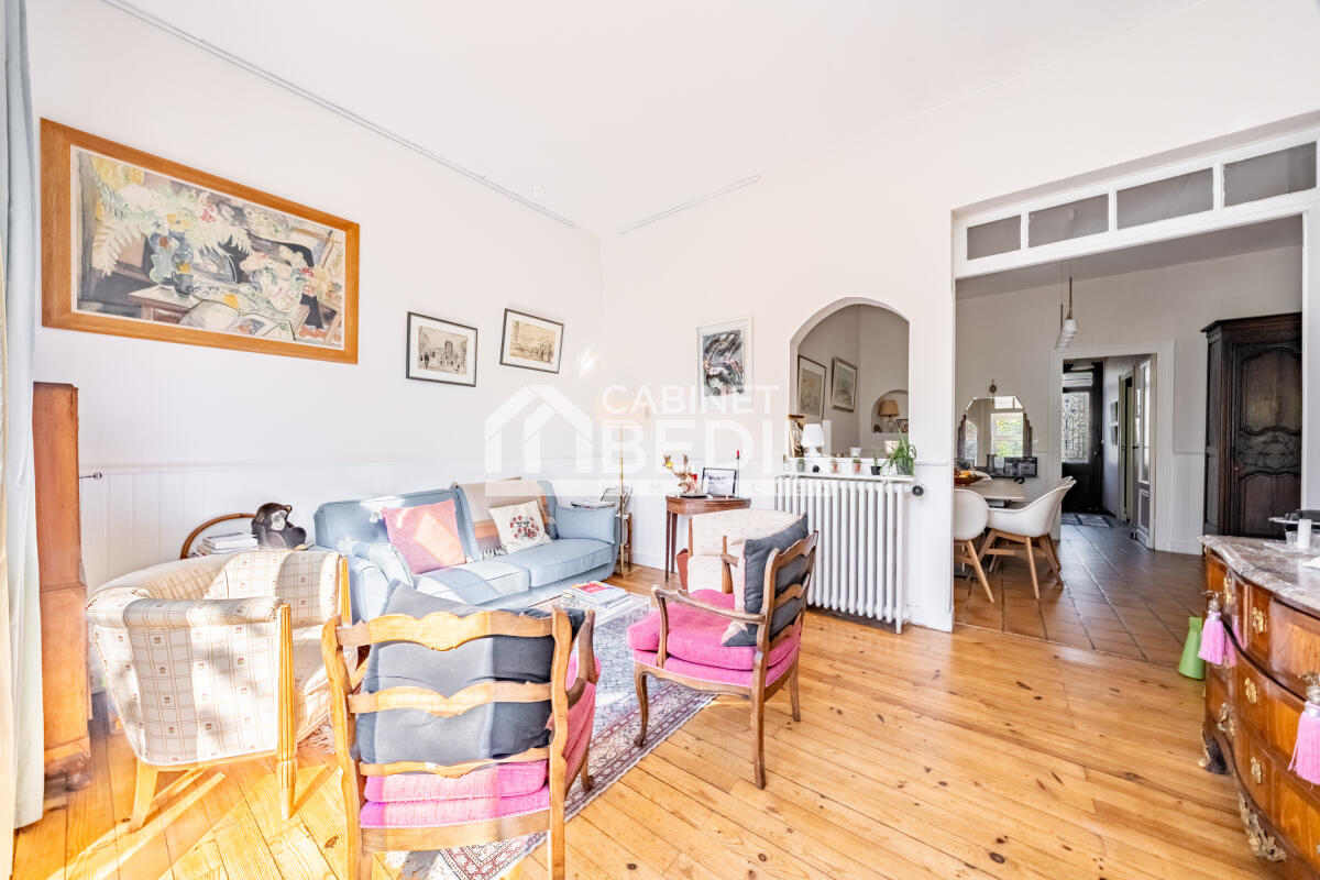 Élégante maison Bourgeoise à la Barrière du Médoc. Vous rêvez de vous installer près du parc bordelais ? Cette maison en pierre du début du siècle, avec sa façade élégante, son jardin et ses deux garages, accueille votre famille nombreuse. Elle offre de beaux ...