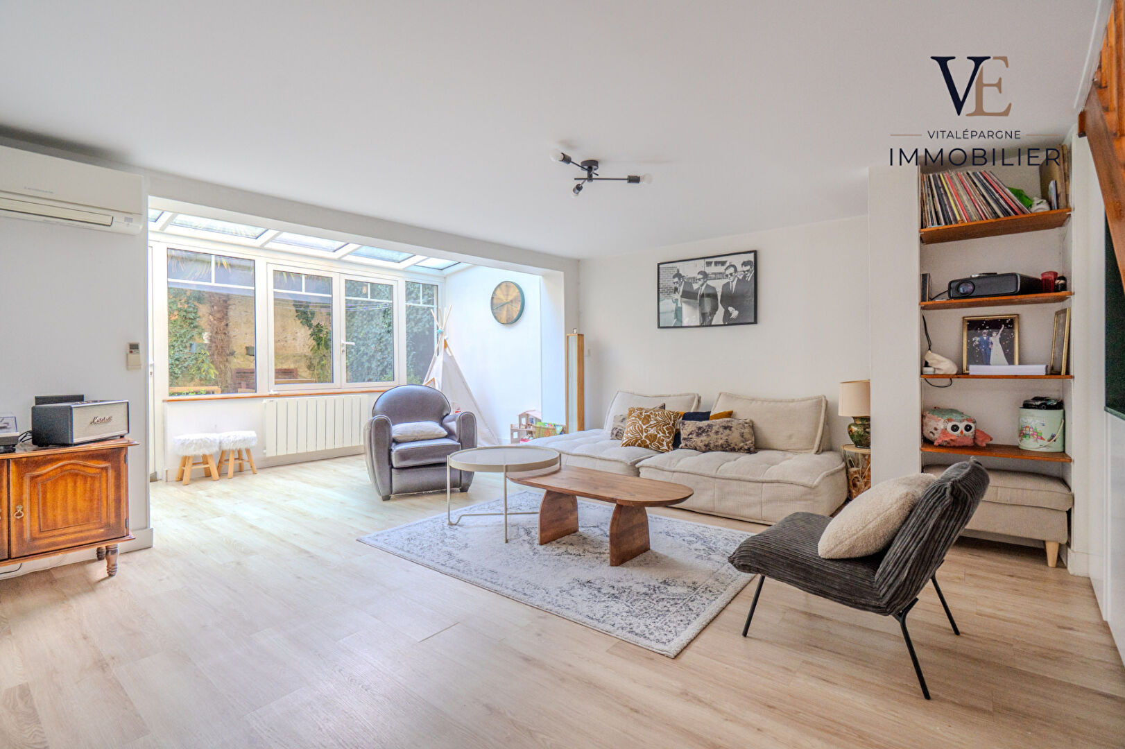 Maison de 84 m2 environ en parfait état, rénovée avec des matériaux de qualité. Elle est composée d'une entrée, une pièce de vie donnant sur jardin de 50 m² expo sud ouest , une cuisine ouverte aménagée et équipée, un cel...