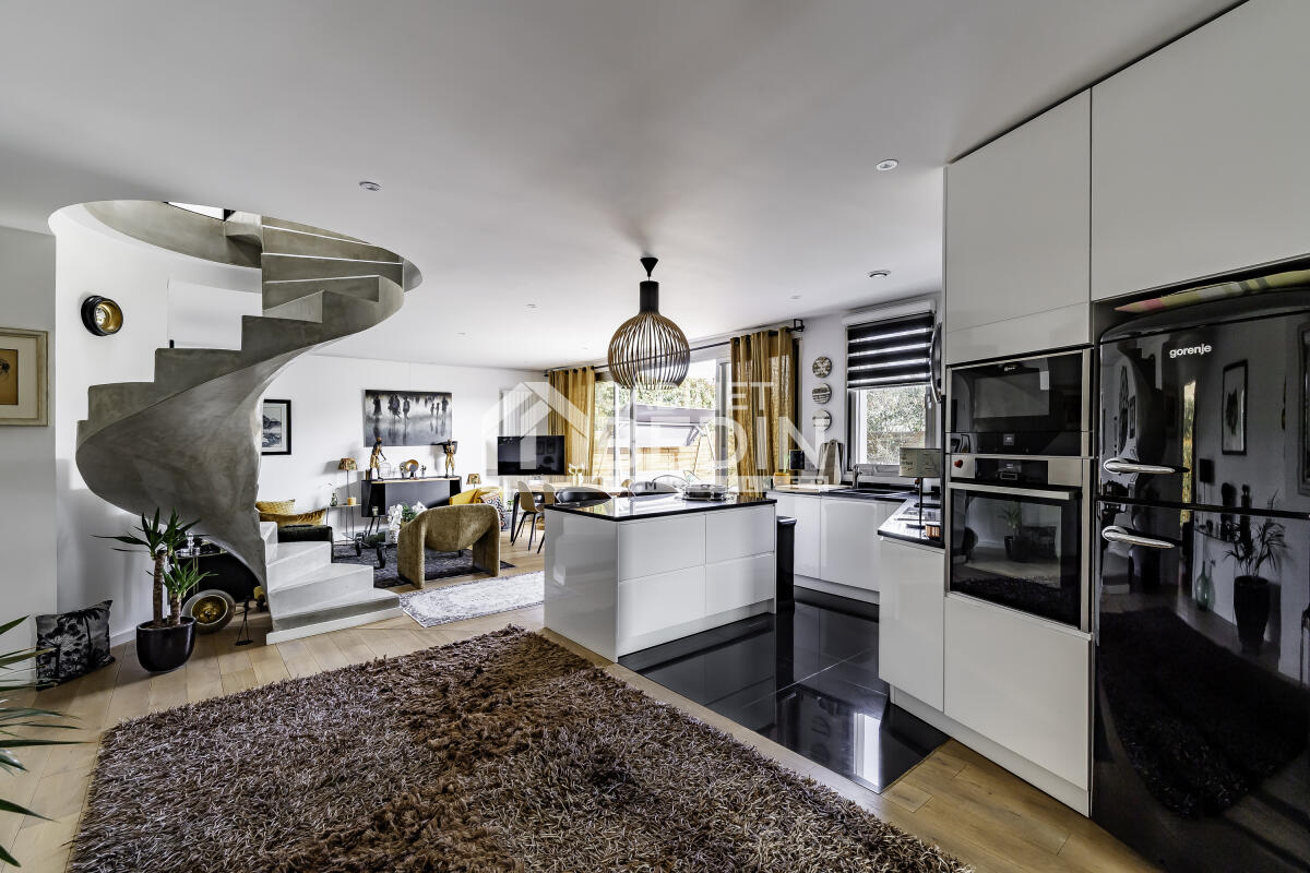 Le niveau d'entrée offre 100m² de surface habitable, comprenant une cuisine, une buanderie, une c...