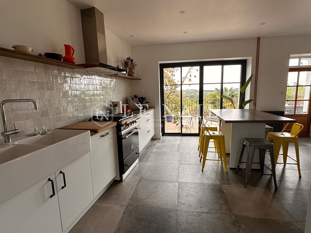 L'Agence LIGNE IMMOBILIER est heureuse de vous présenter ce bien unique, niché dans son parc de chênes, vous offrant une vie de plain pied, pour plus de 194 m² habitables. Vous y découvrirez un hall d'entrée, de style pigeonnier, donnant accès à son ...