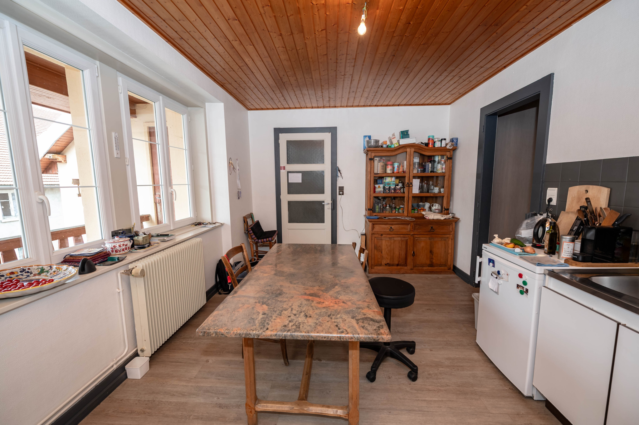 Vous aimez l'authentique ? Cette maison au centre du village est composée, au 1er étage, d'un appartement de type 3 de plus de 80 m2 comprenant cuisine, salon - séjour, salle de bains, cellier et toilettes habitable de suite.