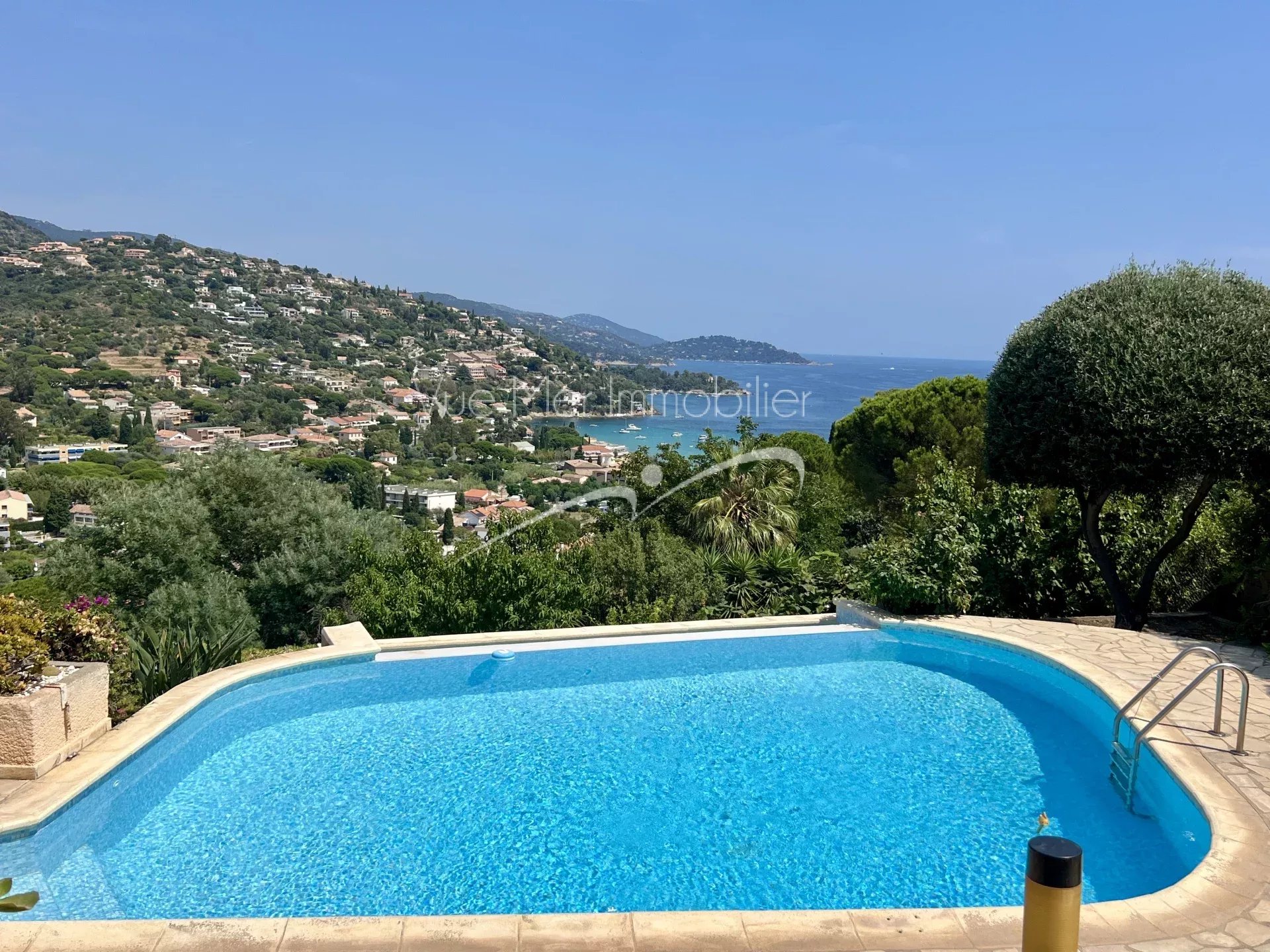 L'agence LAVANDOU IMMOBILIER, SARL familiale depuis 1985, vous propose à la vente EN EXCLUSIVITE cette charmante villa type 5 de 110 m2 habitable avec vue sur mer construite sur un terrain de 806 m2 arboré avec de jolies restanques en pierre et piscinable...